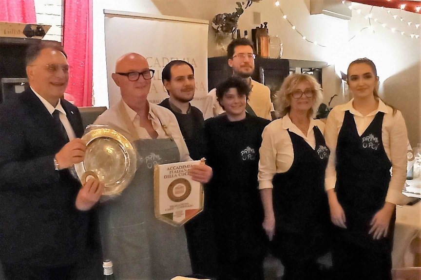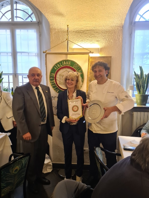 Il Delegato di Carpi-Correggio, Pier Paolo Veroni, nel corso di una conviviale svoltasi al Prima o Poi di Rolo, ha consegnato a nome della Delegazione il premio "Massimo Alberini 2022" per la qualità dei prodotti realizzati alla Latteria Tullia, società agricola cooperativa di Rolo. Presente all’evento anche il Sindaco di Rolo, Luca Nasi (nelle foto). Simposiarca eccezionale, il Consultore Paolo Avaltroni. Ospiti il prof. Paolo Colombo di UNIMORE e il dr. MD Giorgio Benaglia già sindaco di Guastalla. Le spiegazioni e le motivazioni del premio sono state declamate dal Delegato Veroni, dal presidente della Latteria, dal Sindaco Nasi e dai casari convenuti che hanno voluto sottolineare il processo di sviluppo della latteria con investimenti significativi. Il menù della serata è stato un compendio di applicazioni del Parmigiano Reggiano della Tullia ai piatti presentati a base di asparagi, spugnole e carni bianche arrosto che hanno ricevuto ampi consensi. La Latteria Tullia di Rolo venne gravemente danneggiata dal sisma del 2012 con la perdita di ben 20 mila forme di Parmigiano Reggiano. Attualmente il caseificio, che conta su una ventina di associati, produce 110 forme di formaggio al giorno. Un riconoscimento alla continuità di qualità e alla gentilezza anche al Prima o poi di Rolo con la consegna del piatto d'argento a questo ristorante già premiato dalla Delegazione Carpi-Correggio con il Diploma di Buona Cucina 2019.