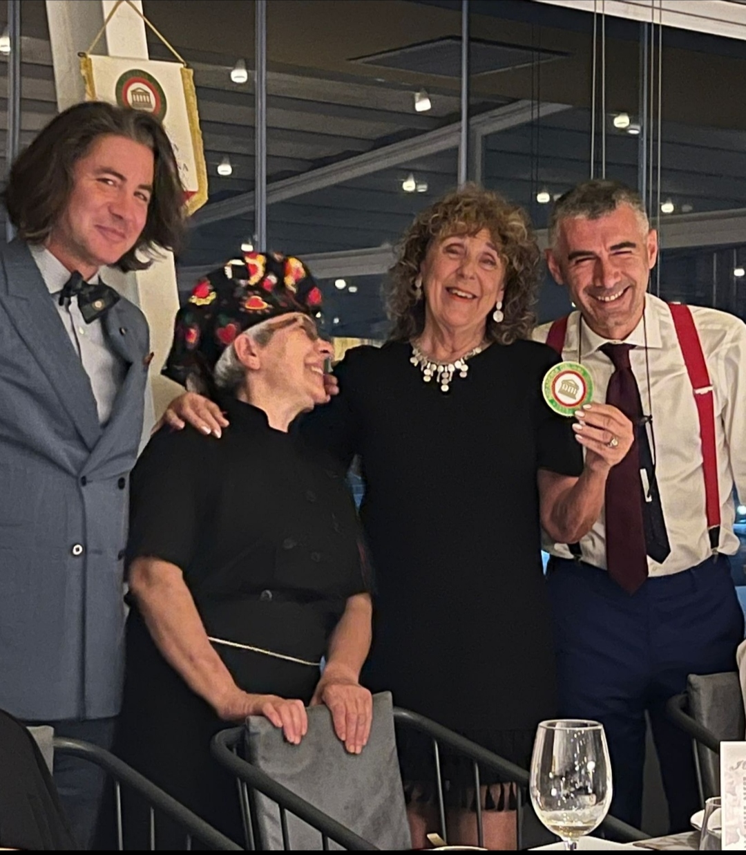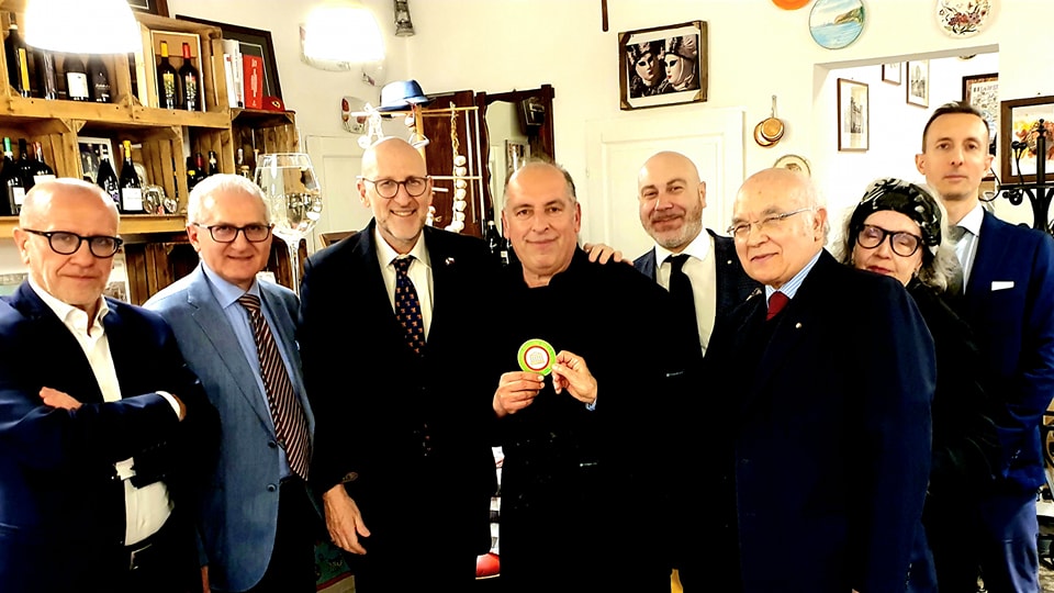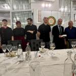 La Delegazione ha fortemente apprezzato la proposta del ristorante “a Cucchiara” che, come evidenziato dal Delegato per l’occasione anche Simposiarca (Foto 1), non considera la tradizione e l’innovazione come una gabbia ma piuttosto come il punto di partenza per l’esplorazione degli orti, degli ovili e degli uliveti di Sicilia, nel rispetto della terra e del mare e delle loro stagioni. L’affollata conviviale, celebrata fra le mura settecentesche di un palazzo gentilizio, è stata festosamente allietata dalla consegna del distintivo e dell’attestato di appartenenza venticinquennale al Consultore di Delegazione Tommaso Faranda da parte del Delegato (Foto 2) che sfoggiava orgogliosamente il distintivo dei 35 anni di appartenenza appena raggiunti. La sala, gremita al limite della capienza, ha degustato il menu proposto con particolare apprezzamento per il cremoso di bufala e burrata con gambero, guanciale e pane tostato, e la messinese “gghiotta” di pesce spada (Foto 3). La consegna del piatto d’argento e della vetrofania al patron Giuseppe Giamboi, allo Chef Tushe e alla cortese e professionale squadra, da parte del Delegato, del Tesoriere Rossi e del Consultore Faranda (Foto 4), ha suggellato una conviviale da non dimenticare.