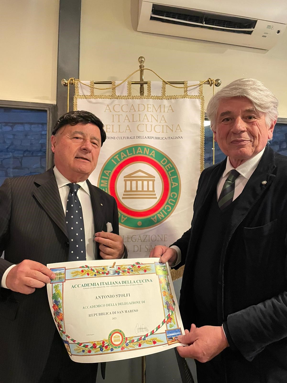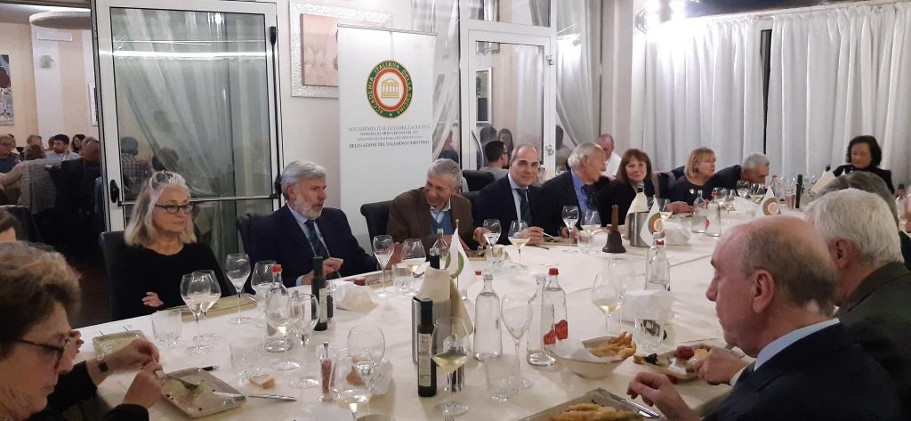 Per la terza conviviale dell’anno, la Delegazione si è riunita presso il ristorante "La Terrazza” nel centro storico di San Marino con una cena speciale dedicata alle prelibatezze della tradizione abruzzese. Il ricco menù, con prodotti provenienti direttamente dall’Abruzzo, è stato illustrato con entusiasmo dal Maître Vincenzo del Colle e tutte le portate sono state molto apprezzate dagli Accademici. Buona la panzanella, ottime le "sagne" e ceci con aglio fritto, impeccabili gli arrosticini e per concludere una gustosa "pizza dolce". Il tutto accompagnato da un gradevole Montepulciano d'Abruzzo Tralcetto della Cantina Zaccagnini, unica scelta di vino proposta in abbinamento. Nell’occasione, il Delegato Andrea Negri ha inoltre dato il benvenuto al nuovo Accademico Antonio Stolfi.