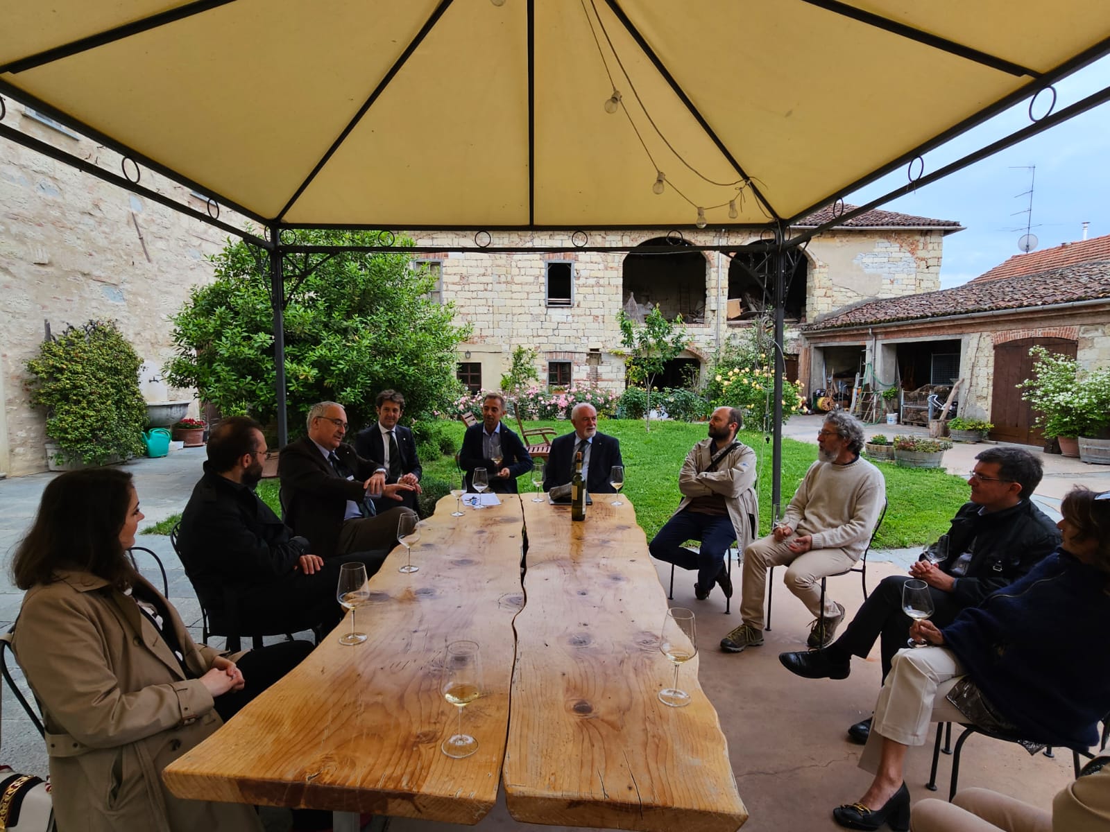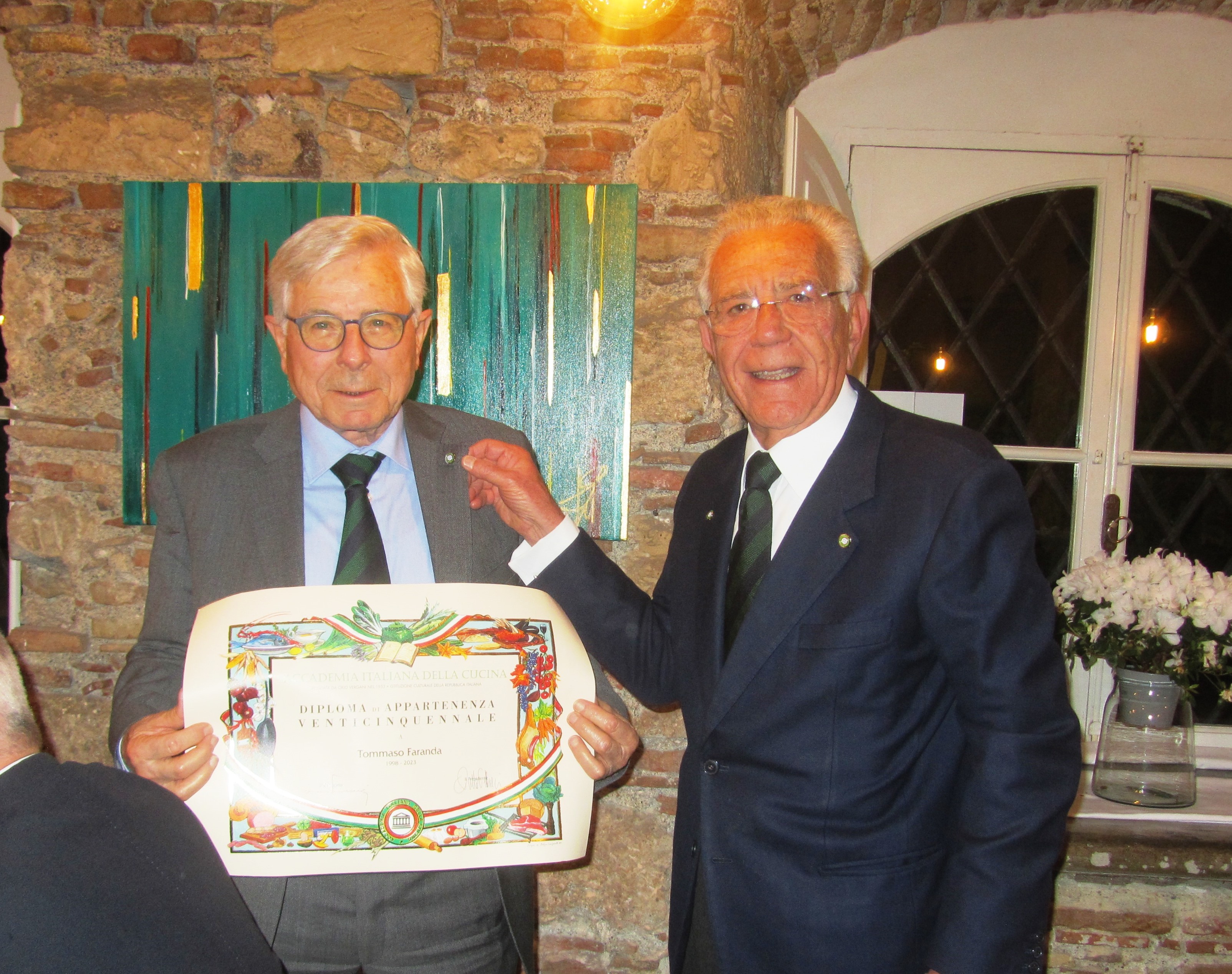 La Delegazione del Monferrato si è riunita per una conviviale nel paese di Cella Monte presso la cantina La Casaccia. Nella bella corte dell’azienda agricola, il Simposiarca Franco Bazzi accompagnato dal proprietario Giovanni Rava, ha raccontato la storia del paese che oltre ad essere uno dei borghi più belli d’Italia vanta un’antichissima storia di produzione vitivinicola. Dopo una visita alla grande cantina scavata nella marna tufacea e all’infernot, la serata è proseguita in una sala dell’agriturismo dove, accanto ad una stufa a legna ben attiva, si è dato corso alla degustazione di alcuni vini di produzione sapientemente accostati a piatti della tradizione monferrina, tra cui salumi artigianali da carne di suini allevati nel bosco già impiegati in un progetto di contrasto alla piaga della flavescenza dorata e agnolotti al sugo d’arrosto a pasta particolarmente chiara e sottile molto apprezzati dagli Accademici.