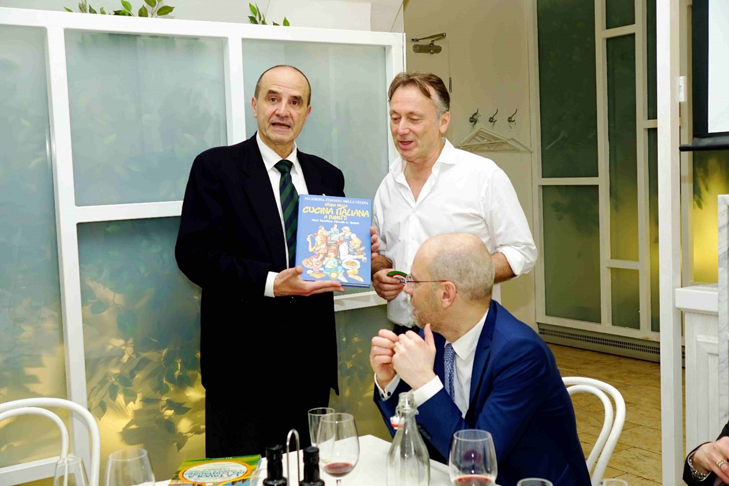 Delegazione Londra – consegna volume "Storia della Cucina Italiana a Fumetti"