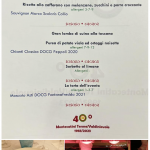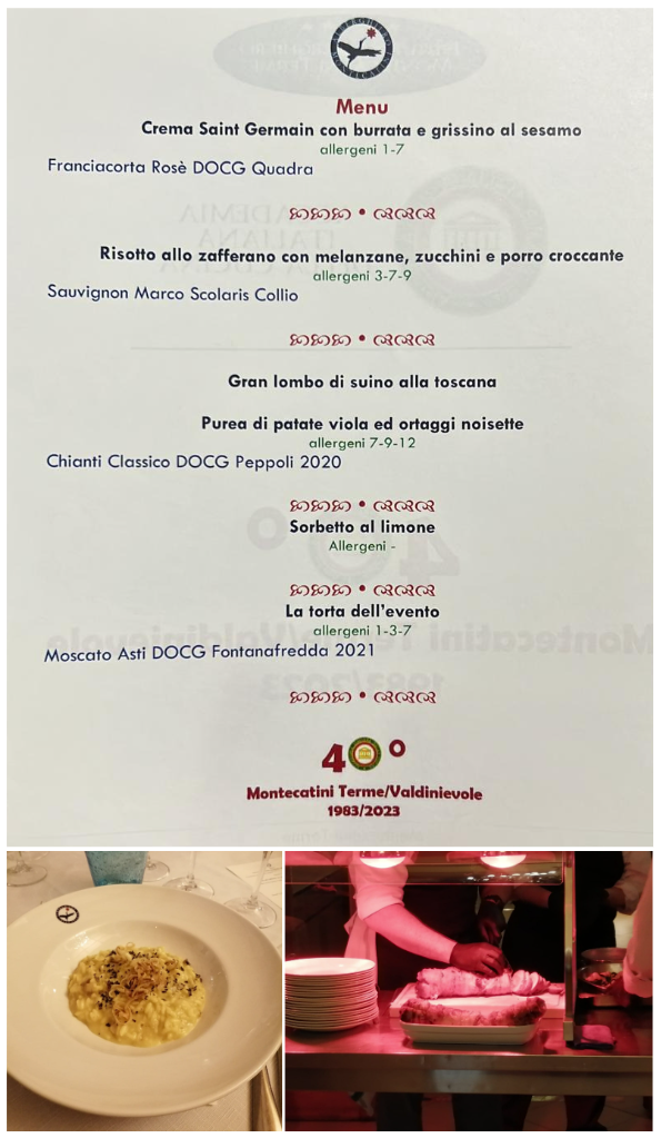 Cena del 40° anniversario della Delegazione presso l’Istituto Alberghiero “F. Martini” di Montecatini Terme, con partecipazione di numerosi Accademici e rappresentanti delle Delegazioni vicine e non. Tutte apprezzate le portate del menù, con l’eccezione del secondo piatto, festeggiata la torta “dedicata”. Assai apprezzati i vini proposti e ben valutata la prestazione delle brigate di ricevimento, cucina e sala. Il Delegato Onorario Doretti ha rievocato in apertura i primordi della Delegazione, mentre il Delegato Giovannini ha sottolineato con piacere la presenza amichevole delle altre Delegazioni e dei numerosi Accademici, auspicio e garanzia di altri 40 anni di vivace attività. Al termine, distribuzione di un ricordo della serata.