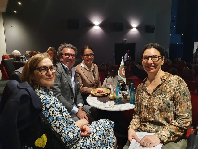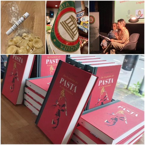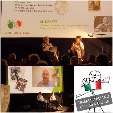Serata ricca e coinvolgente quella di venerdì 12 maggio, a Bad Soden nel cinema Casablanca Art Haus, strapieno per la rassegna mensile di Cinema Italiano, patrocinata dal Consolato Generale di Italia a Francoforte sul Meno e in collaborazione, per la seconda volta, con la Delegazione di Francoforte dell’Accademia. Nuovamente una serata di CINEMA&CUCINA con la commedia Mine Vaganti (2010) di Ferzan Özpetek. Perché questa appetitosa cooperazione? Perché non si può non pensare all’ “universo-cibo” quando si parla di Ferzan Ozpetek. Il regista predilige le cucine, i fornelli e le tavolate imbandite, intorno alle quali riunisce i suoi personaggi. Siamo in Puglia dove due fratelli, figli di un industriale della pasta, cercano di confessare in famiglia la loro omosessualità̀ nonché il poco interesse a prendere in mano le redini del pastificio. La Delegazione accademica ha introdotto il pubblico “nel mondo della pasta“ grazie ad una speciale presentazione in sala prima della proiezione, cui è seguito un contributo video dello storico e gastronomo bolognese Luca Cesari autore del libro: “La storia della pasta in 10 piatti“ da poco tradotto anche in lingua tedesca. Delizioso il fingerfood a tema. Apprezzatissima anche la sorpresa gastronomica: un sacchettino di orecchiette tradizionali con la ricetta (orecchiette alle cime di rapa) tratta dal ricettario accademico!