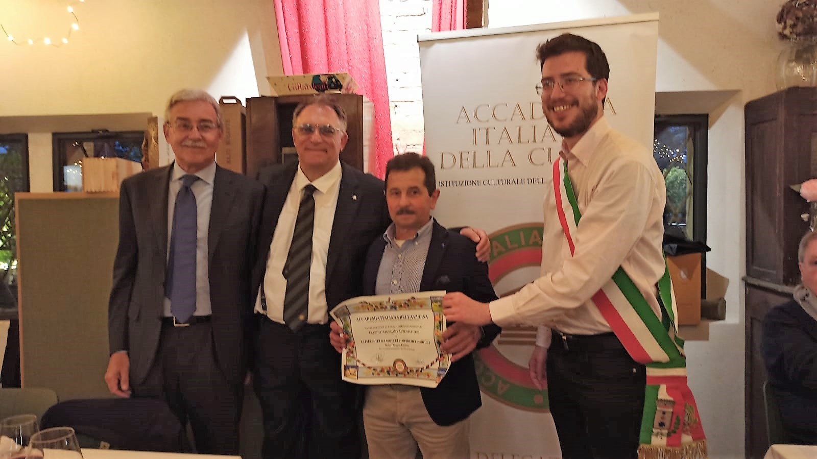 La Delegazione di Borgo Val di Taro ha celebrato i 60 anni della sua costituzione con un convegno che ha affrontato il tema “Cucina che cambia nelle Valli del Taro e del Ceno” riportando esperienze, conoscenze e valori presenti nei piatti e nelle ricette tradizionali. Relatori Presidente Onorario Giovanni Ballarini, prof. PierGiovanni Bracchi, Col. Carabinieri Forestale PierLuigi Fedele, Prof. Emidio Borghi, Direttore Musei del Cibo dr. Giancarlo Gonizzi, Dr. Italo Pizzati Forestale, Errica Tamani giornalista gastronoma. Al tempo stesso è stato presentato un libro che ripercorre le vicende di questi luoghi per non dimenticare un passato ricco di storia e per magnificare quei piatti, abili interpretazioni dei prodotti del sottobosco. Buone cucine conservate nelle Terre Alte parmigiane dall’appassionata attività di generazioni di gastronomi. I lavori si sono conclusi a Compiano, uno dei borghi antichi più noti della Provincia di Parma. Il menù scelto ha ricalcato quello dell’inaugurazione del sodalizio, prosciutto crudo 36 mesi con salumi misti, tortelli d’erbetta, arrosto di vitello farcito con erbe poi concluso con la torta celebrativa del 60° anniversario.