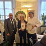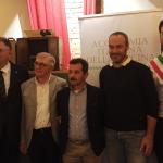 Grandissima partecipazione e successo per il convegno promosso dalla Delegazione di Fermo con il patrocinio della Provincia di Fermo e del Comune di Porto San Giorgio sul tema: Convivio e Convivialità. Dopo i saluti delle autorità, apprezzatissimi gli interventi del Prof. Diego Poli, già professore ordinario di Glottologia e Linguistica presso l'Università di Macerata, dell’Accademico Lando Siliquini Presidente del Laboratorio Piceno per la Dieta Mediterranea, di Mons. Vinicio Albanesi, Presidente delle Comunità di Capodarco, fondatore dell’agenzia giornalistica Redattore Sociale; del Vice Presidente Vicario dell’Accademia Mimmo D’Alessio. Il Sindaco di Porto San Giorgio ha voluto ringraziare per la presenza il Vice Presidente Vicario con una targa ricordo (foto 1). Nell’occasione sono state consegnate le onorificenze per l’appartenenza trentacinquennale all’Accademia al Consultore di Fermo Stefano Jacovacci e al Delegato Onorario di Ascoli Piceno Sergio Sadotti e, per l’appartenenza venticinquennale, a Paolo Ulissi già Delegato di Ascoli Piceno (tutti in foto 2). I festeggiamenti sono proseguiti nella sala ristorante dell’Hotel Caminetto con un pranzo sul tema: “Territorialità, tradizione e stagionalità” con pesce freschissimo alla base delle più tipiche ricette della marineria sangiorgese (foto 3). I consensi si sono tuttavia concentrati sulla Torta San Giorgio, tipica preparazione gelato della cittadina (foto 4). Apprezzamenti e ringraziamenti ai Simposiarchi Maura Raccichini e Cristofaro La Corte.