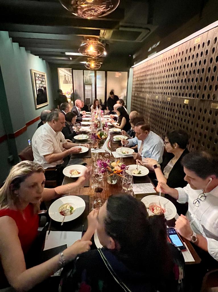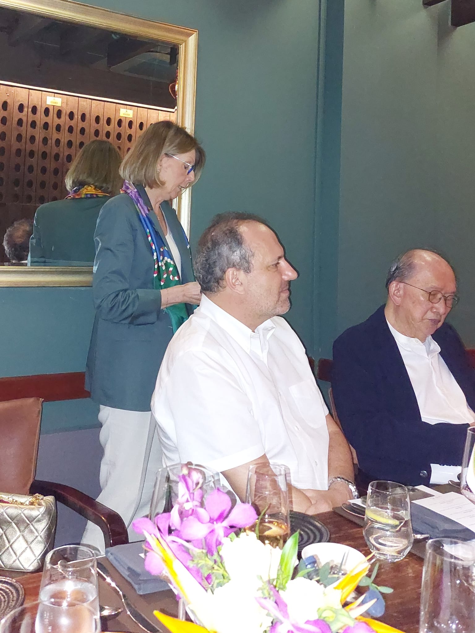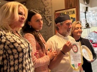 Si è voluto celebrare l’arrivo della nuova Console Generale Raffaella Valentini presso un ristorante di sicuro successo sia per l’ambiente elegante sia per il cibo, rivisitando il locale “Via Alloro” dei fratelli Drago, divenuti un’istituzione in questa città dai mille aspetti culturali ed etnici. Oltre agli Accademici sono stati invitati alcuni ospiti esterni considerato il momento di grande ufficialità. Prima di dare inizio al convivio, la Delegata Mariella Salvatori ha dato il benvenuto alla illustre ospite accompagnata nell’occasione dalla Console Lorenza Errighi, illustrando alcune delle notizie apparse nella newsletter AIC. La Console Generale nel ringraziare, ha annunciato il tema dell’anno relativo alla Settimana della Cucina Italiana 2023, enfatizzando l’importanza del cibo sano e la risonanza delle nostre tradizioni in tutto il mondo. Ha inoltre ricordato che quest’anno ricorrono i 70 anni della costituzione dell’ Accademia e l'importanza della sua opera di promozione. Infine la Vice Delegata Paola Lorenzi ha illustrato il significato e l’importanza della tradizione delle uova pasquali. Nell’augurare una Buona Pasqua sono stati consegnati i volumi in italiano e in inglese rispettivamente alla Console Generale e alla Console. A fine serata è stato consegnato il volume “la Tavola del Contadino” al propietario.