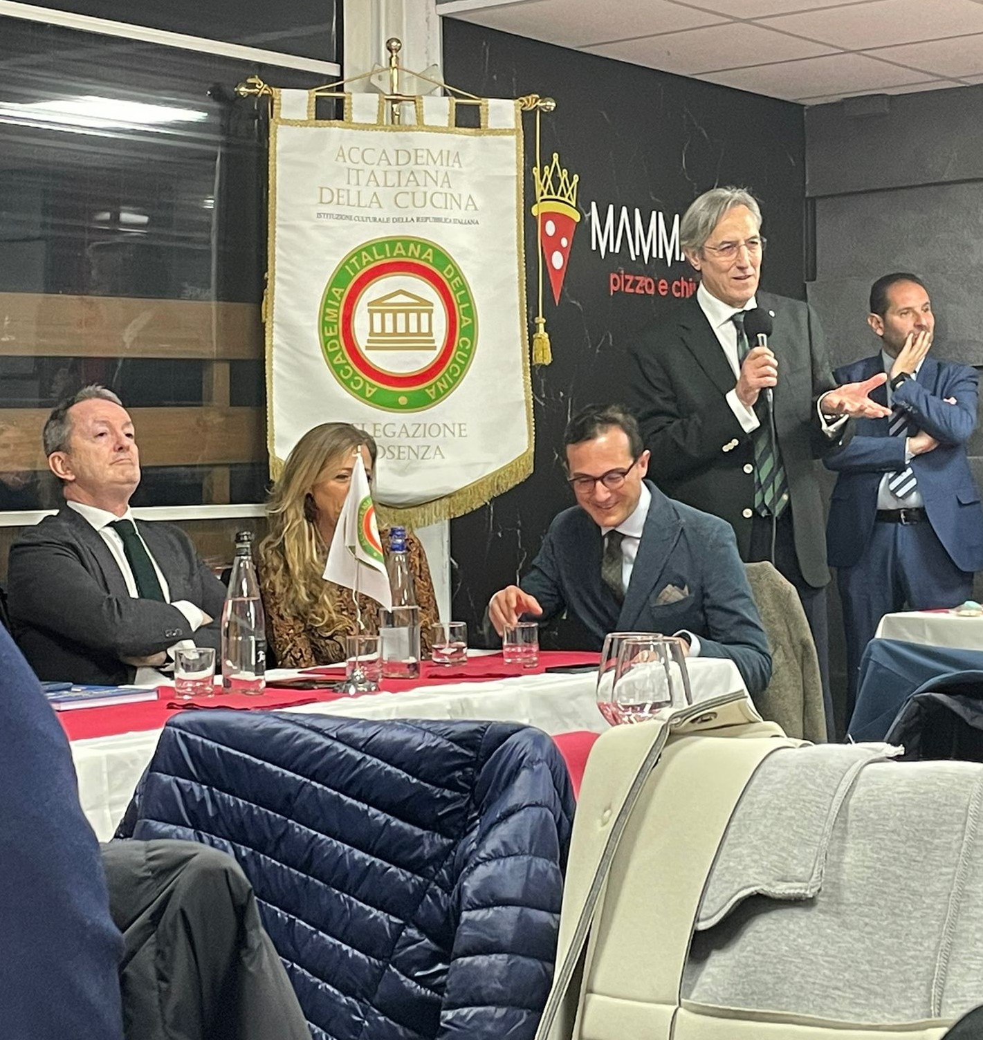 Le origini e le successive evoluzioni della pizza napoletana, uno dei simboli per eccellenza della gastronomia italiana all’estero, hanno costituito gli elementi del confronto "La Pizza Napoletana. Da cibo di strada e veloce a piatto globale più amato" organizzato dalla Delegazione di Cosenza. Aprendo i lavori (foto 1), il Delegato Rosario Branda ha avuto modo di evidenziare che le prime tracce del vocabolo risultano di poco antecedenti l’anno mille e di come l’area di diffusione includesse tutta l’Italia centro-meridionale, ma che l’etimologia della parola sarebbe molto più antica. Dopo l’intervento del Prefetto di Cosenza Vittoria Ciaramella (foto 2), campana di nascita ed appassionata consumatrice di pizza che ha arricchito la discussione con racconti ed aneddoti, di particolare valenza l’intervento del maestro pizzaiolo Luciano Sorbillo (foto 3 con il Delegato e le Autorità) che ha posto l’accento sul fatto che si deve all’intraprendenza dei napoletani se, a partire dai primi del Novecento, la pizza ha trovato diffusione pressoché universale diventando la bandiera della gastronomia italiana. Prima di passare alla degustazione in forma conviviale di sette differenti gusti di pizza, presentati in abbinamento con una selezione di spumanti metodo classico prodotti in Calabria, il maestro Sorbillo si è intrattenuto con gli Accademici ed i numerosi ospiti (foto 4).