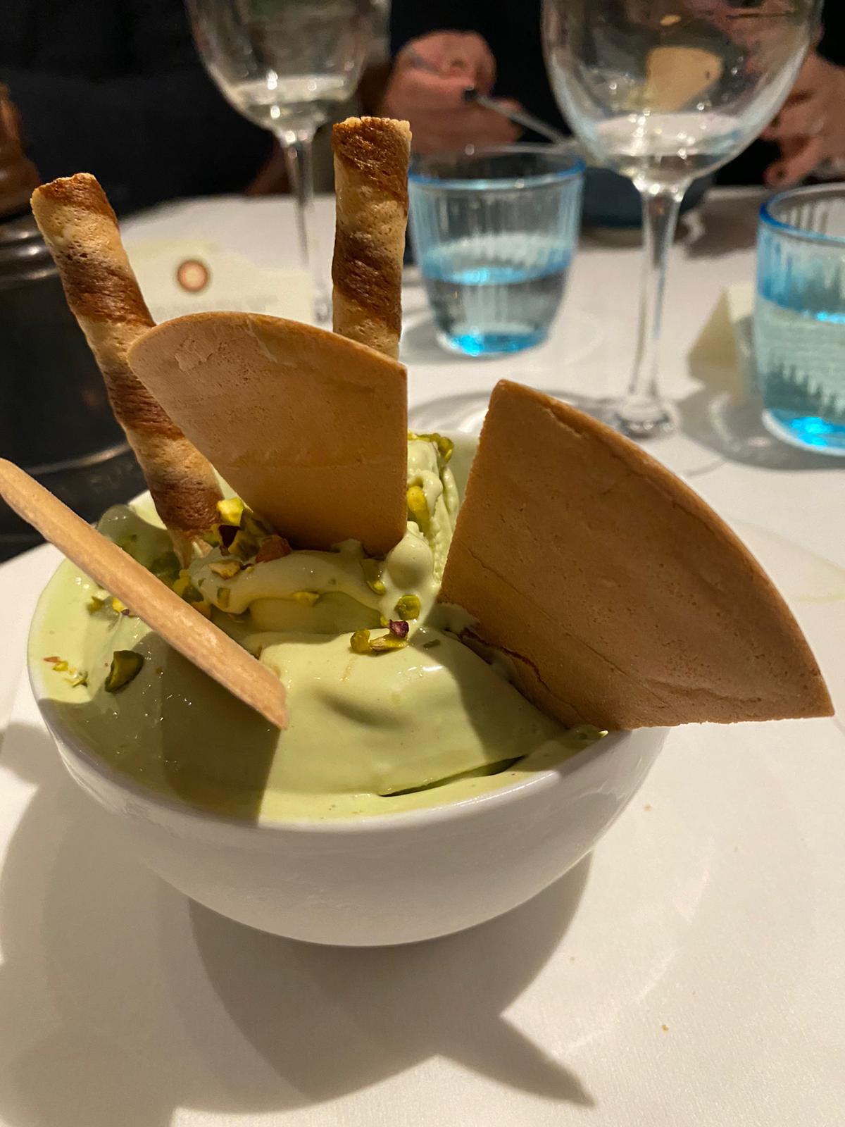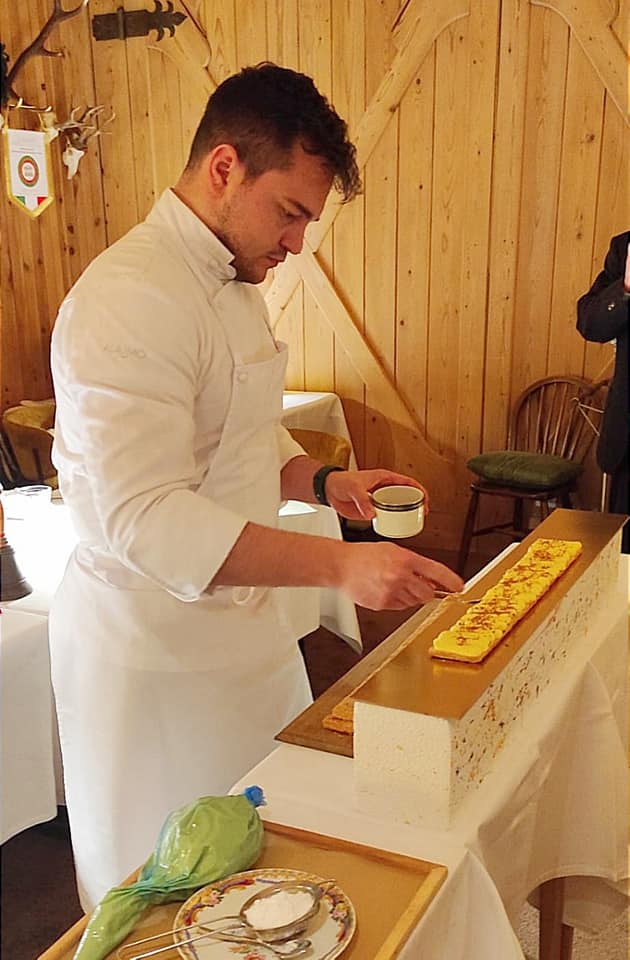 Mentre la Delegazione di Cortina d’Ampezzo si riuniva per la Conviviale di Primavera, scendeva sulla valle un’inaspettata nevicata che rendeva ancora più accogliente la calda atmosfera del nuovo ristorante Alajmo, che ha aperto di recente nei locali dello storico El Toulà. In un ambiente elegante e raffinato, rinnovato e curato nei minimi dettagli, i Simposiarchi Maurizio Pozzan e Diego Belli hanno ricordato la storia del ristorante e della famiglia Alajmo: percorso che ha anticipato il menu servito in tavola, un misto di tradizione ed innovazione. I piatti sono stati gustati e dibattuti tavolo per tavolo, mentre il servizio attento e scrupoloso ha reso la serata particolarmente gradevole. Dalla particolarità dei piatti e degli abbinamenti proposti è scaturito più volte un interessante confronto con il direttore del locale Davide Da Re, che ha reso la serata particolarmente stimolante dal punto di vista delle tradizioni culinarie e degli obiettivi dell’odierna cucina. Foto 1. I Simposiarchi Maurizio Pozzan e Diego Belli. Foto 2. Il cuoco Mattia Barni alle prese con la sfoglia alla crema pasticcera. Foto 3. La brigata di cucina. Foto 4. Risi e Bisi.