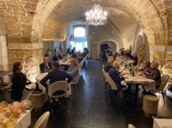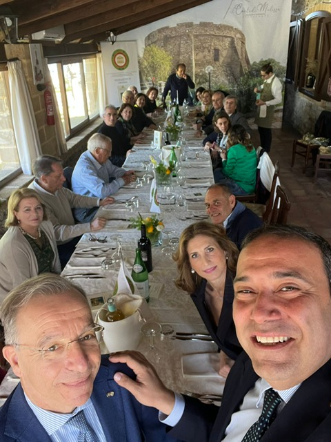 La Delegazione di Crotone si è data appuntamento nel paesino lungo la costa di Torre Melissa presso la bella e ben conservata Torre Aragonese (1500) per la Conviviale di Pasqua. Nella sala storica dei convegni della suddetta Torre gli Accademici e i graditi ospiti sono stati intrattenuti con una interessante e seguita conversazione da parte del Delegato avente per tema: “Non c’è Pasqua Cristiana senza Pasqua Ebraica“. La Delegazione si è poi trasferita nel cortile del Pozzo della stessa Torre dove è stato offerto un frizzante aperitivo con gustosissimi frittini. Quindi tutti nell’attiguo ristorante “Il Conte di Melissa“ dove si è dato inizio al convivio. Le pietanze sono state preparate con cura e nel pieno rispetto delle tradizioni culinarie della Pasqua del territorio. Già dagli antipasti con le tipiche preparazioni con asparagi e carciofi, alla storica Pasta “Chjina“ realizzata con gli zitoni spezzati, fino al capretto con patate al forno, e poi i dolci pasquali tipici del crotonese tra cui l’immancabile “Cozzupa“ e il tutto annaffiato dal classico vino di Cirò, tutti hanno avuto la piacevole sensazione di trovarsi coinvolti in un nostalgico pranzo dai sapori di una volta.