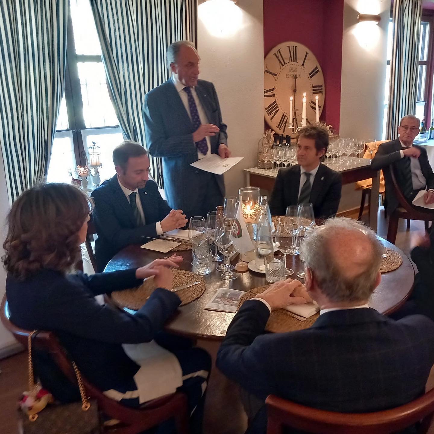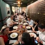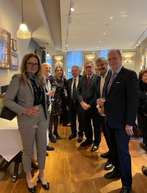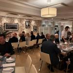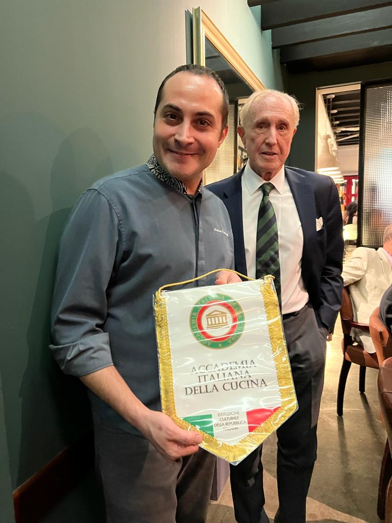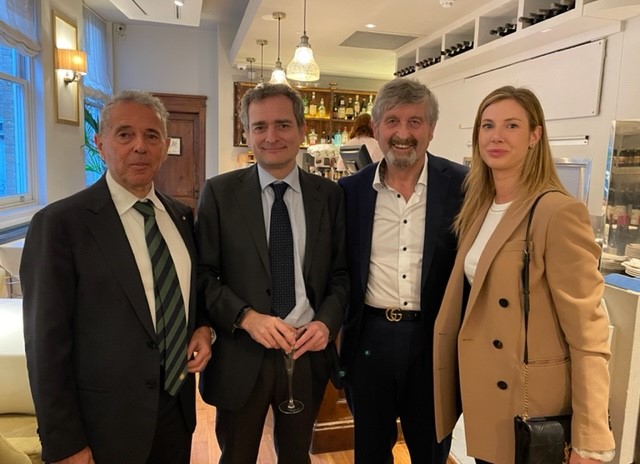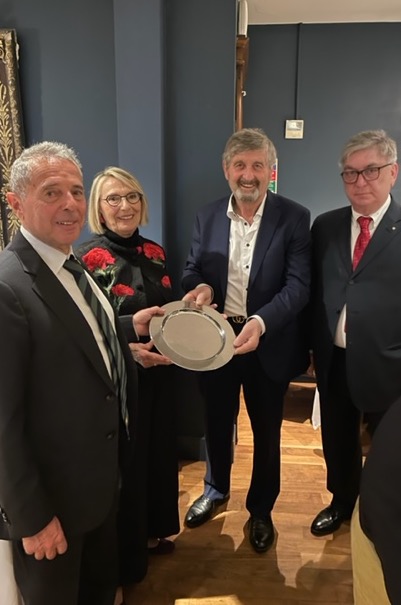 La riunione conviviale si è tenuta nel locale “Caldesi in Marylebone” di Giancarlo Caldesi che, a buon titolo, può essere considerato storico nel panorama della ristorazione di Londra. Giancarlo è stato insignito del titolo di Cavaliere del Lavoro per il suo grande impegno lavorativo. Si è scelto un menu tradizionale della cucina toscana che è stato molto apprezzato da Accademici e ospiti, tra i quali il Ministro dell’Ambasciata d’Italia Riccardo Smimmo. I presenti hanno particolarmente gradito i crostini serviti con il prosecco durante l’aperitivo in piedi e gli gnocchi preparati con grande maestria poco prima dell’evento. L’ambiente è molto accogliente e familiare, il servizio premuroso e attento, con Giancarlo Caldesi sempre presente nel commentare i piatti serviti e dialogare con gli ospiti. Al termine, il Delegato Maurizio Fazzari ha consegnato a Giancarlo e alla brigata di cucina il piatto ricordo dell’Accademia. Un caloroso ringraziamento ai Simposiarchi Giuseppe D’Anna, Consultore, e Fiamma Arata per l’ottima organizzazione della serata.