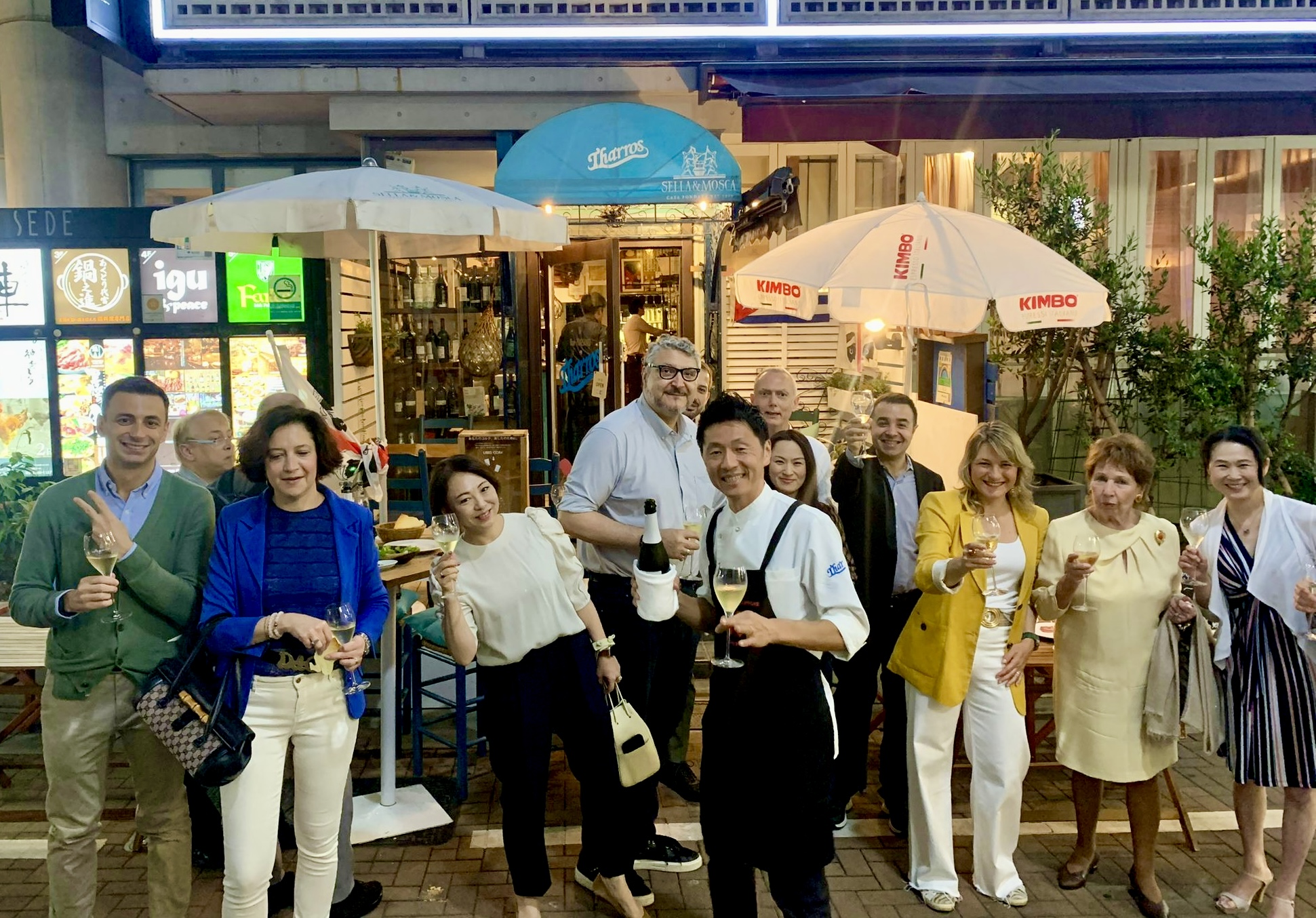 In una calda serata pre estiva la conviviale sulla cucina tabarchina è iniziata con un apprezzatissimo aperitivo all’aperto, tra i vicoli affollati di una Shibuya di inizio weekend. Convinti anche i più riluttanti, gli Accademici si sono accomodati a tavola per iniziare l’esplorazione con la accattivante introduzione del Simposiarca Matteo Belfiore che, assiduo frequentatore della splendida isola di San Pietro in Sardegna, ha fatto desiderare ai presenti di visitarla quanto prima. Lo chef Baba Keitaro, che per lungo tempo ha lavorato proprio a Carloforte in uno dei suoi più prestigiosi ristoranti, ha spiegato con dovizia di particolari le preparazioni facendo vivere una vera esperienza culinaria tra Africa, Liguria e Sardegna. Ciliegina sulla torta il collegamento a fine serata con il sindaco di Carloforte Stefano Rombi che ha salutato gli ospiti dell’Accademia e il personale del ristorante Tharros in un abbraccio virtuale tra Tokyo e Carloforte. A lui va lo speciale ringraziamento della Legazione.