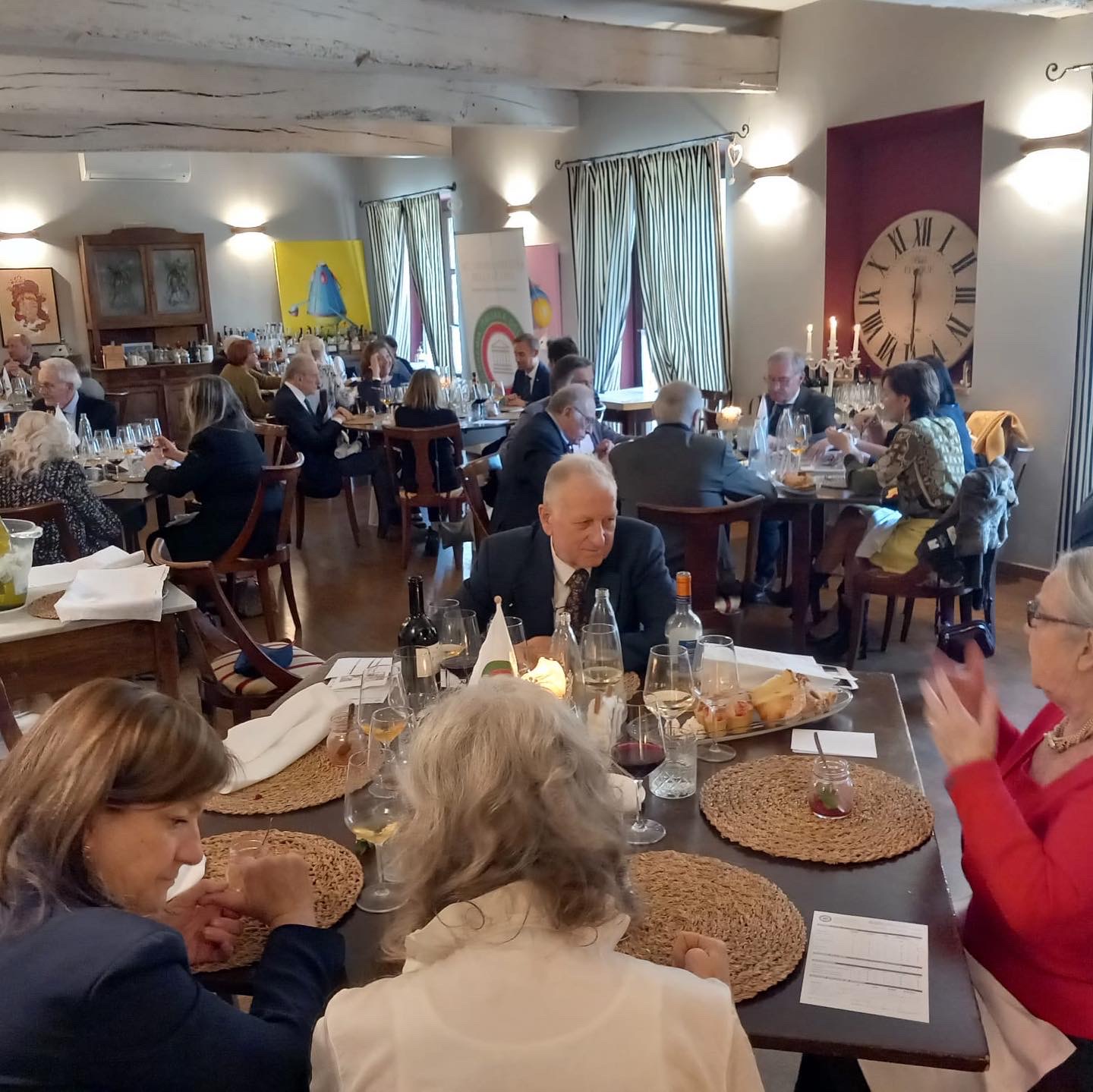 Gli Accademici della Delegazione di Alessandria si sono ritrovati per la seconda riunione conviviale dell’anno presso il ristorante Donatella Bistrot ad Oviglio in occasione degli auguri di Pasqua (foto 1). Ospiti della Delegazione, Elisabetta Cocito, Direttore del Centro Studi Territoriale Piemonte e Pietro Caire, Delegato del Monferrato (foto 2 da destra: Delegato Matteo Pastorino, Elisabetta Cocito e Pietro Caire). Chiarissimo il relatore e Simposiarca della giornata, il Vice Delegato Giorgio Borsino (foto 3), il quale, oltre a decantare i piatti presenti nell’ottimo menù, ha dato il via ad una serie di interventi che, come illustrato dal Delegato Matteo Pastorino, verteranno di volta in volta sulle eccellenze della provincia di Alessandria. Un convivio all’insegna dell’amicizia volta alla conoscenza dei prodotti locali presenti nel menù che si è concluso con la consegna della vetrofania dell’Accademia 2023 alla titolare del locale, la signora Donatella Vogogna (foto 4) a cui sono andati gli apprezzamenti degli Accademici per gli ottimi piatti serviti.