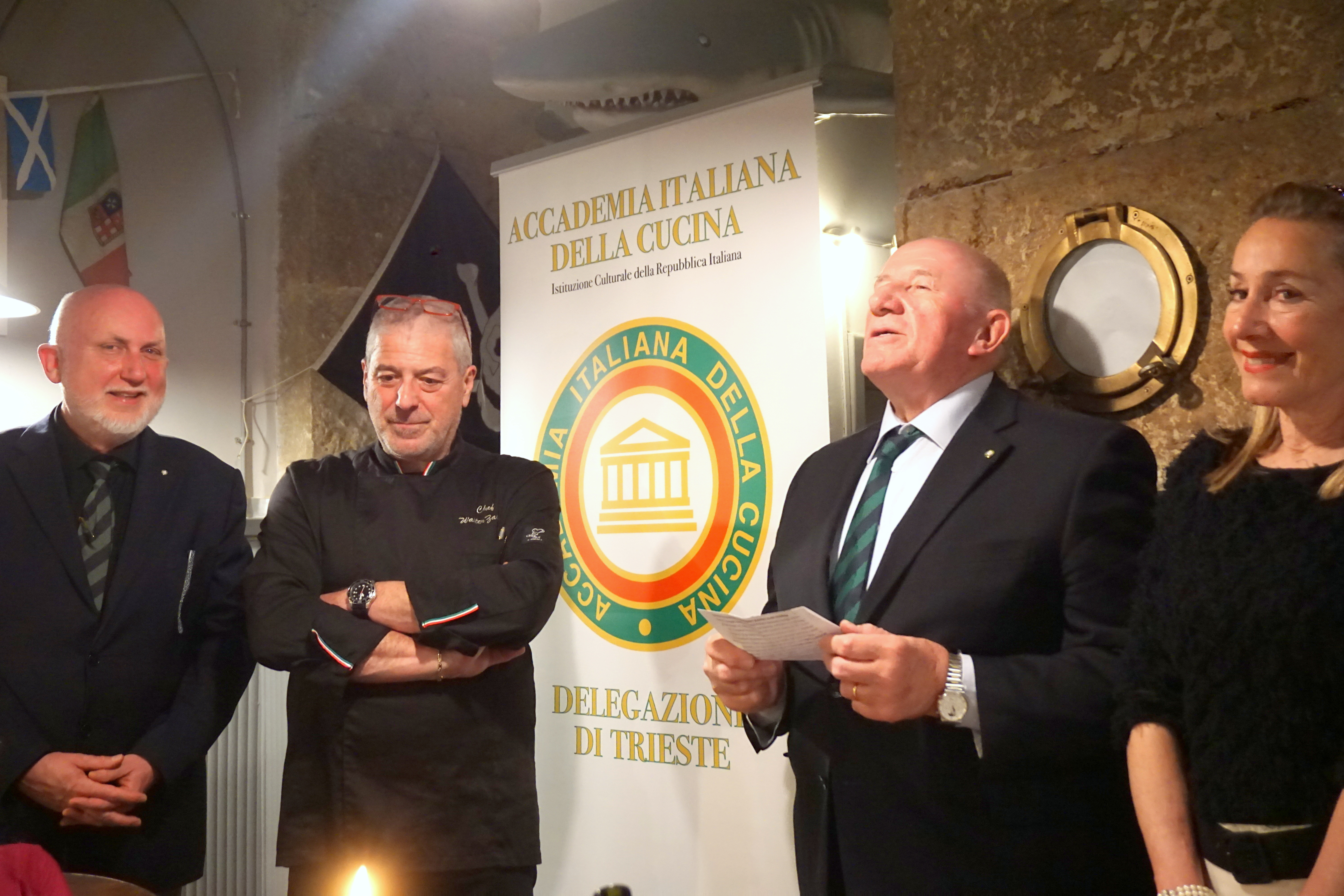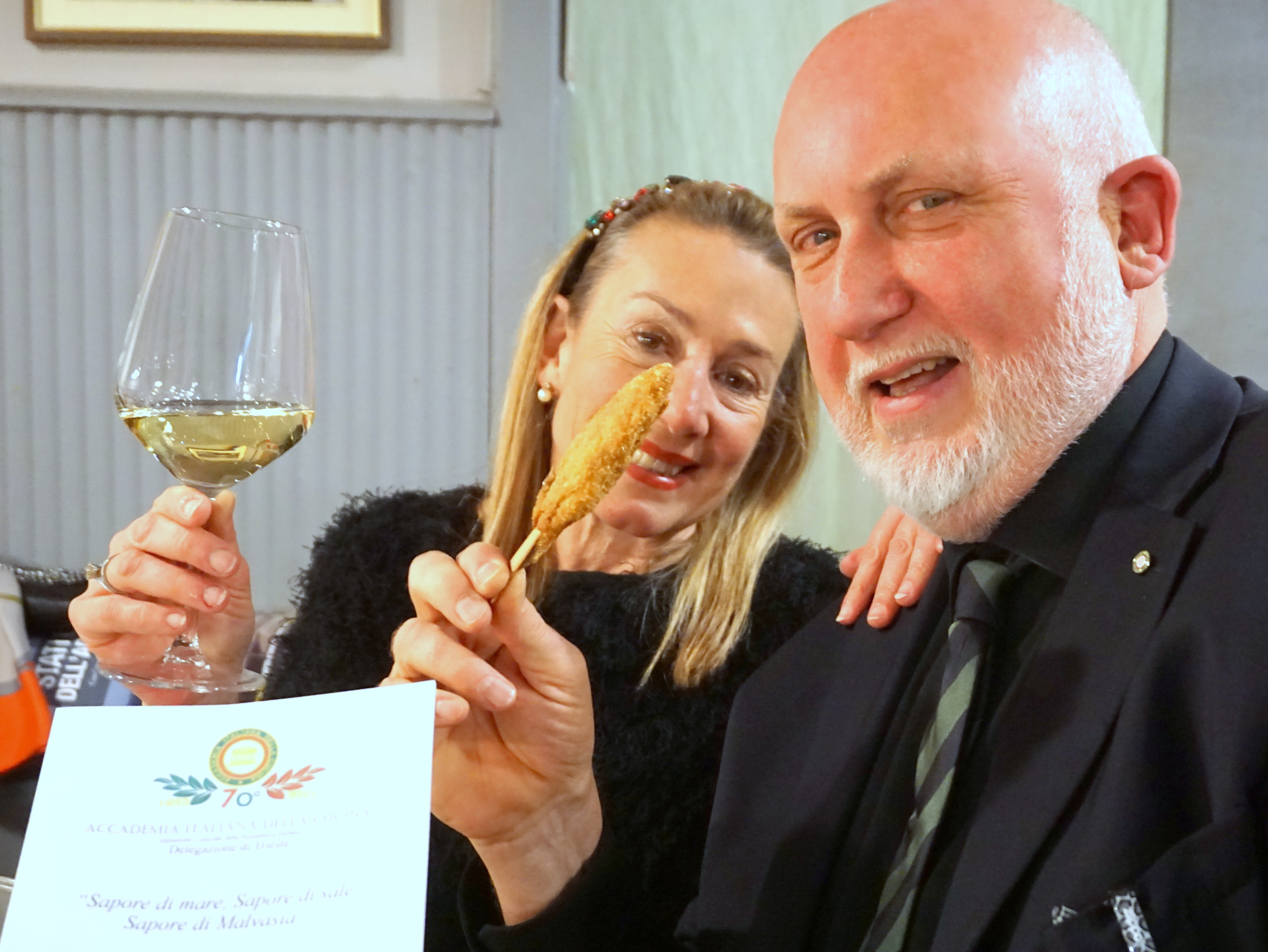 Prologo artistico al Museo Revoltella: la Galleria d’Arte moderna di Trieste. Una suggestiva visita alla mostra su “I Macchiaioli” con la guida appassionata dell’architetto Stefano Bronzini. A seguire il Convivio presso la Bottega Trimalcione, un locale distante solo pochi passi. Una bottega artigiana come ama definirla Walter Zacchini, chef e patron. Narratore suadente e sicuro di sé: rivendica l’ambizione di fare tutto in casa. Tema dell’incontro “Sapore di mare, sapore di sale, sapore di Malvasia”. È così è stato. Un tourbillon di ghiottonerie di mare, intervallato dall’agile narrazione del simposiarca Stelio Smotlak. Con il vino Malvasia istriana confermato quale sublime accompagnamento della cucina nostrana.