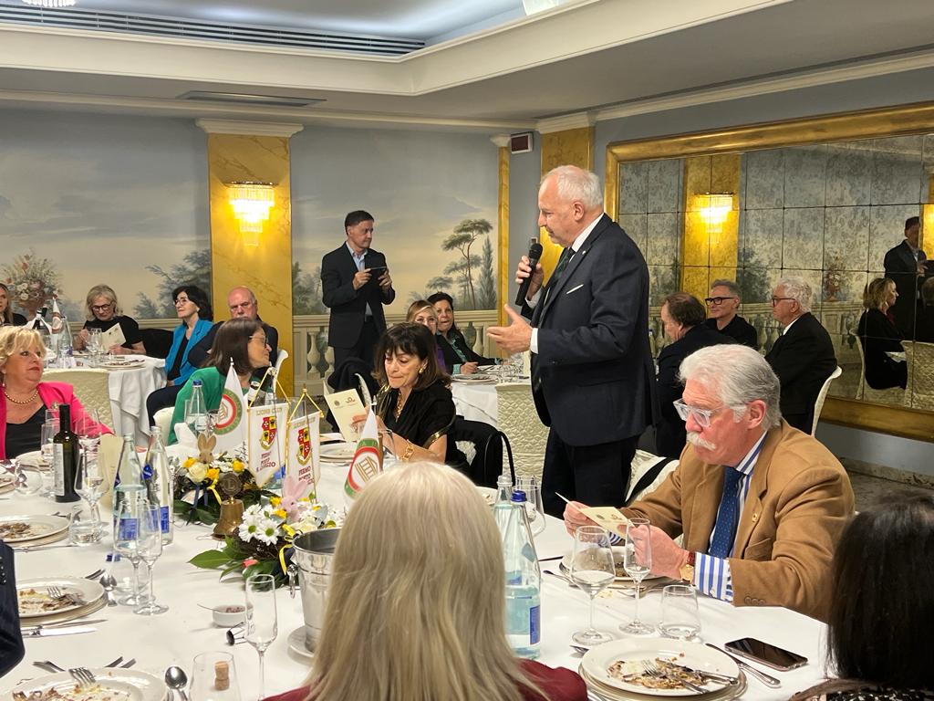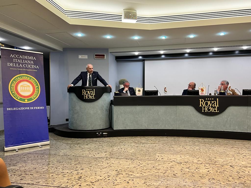 Nella sala meeting dell’Hotel Royal di Casabianca di Fermo, gli Accademici fermani hanno incontrato gli amici dei Lions del Club di Fermo e Porto San Giorgio per uno scambio culturale sulle attività e finalità delle due Associazioni. Dopo i saluti del Delegato di Fermo Fabio Torresi e del Presidente Lions Dante Vecchiola, il Coordinatore Territoriale Marche e Delegato di Ancona Sandro Marani, per l’Accademia, e il primo Vice governatore del Distretto 108 A Marco Candela, per i Lions, hanno illustrato gli scopi delle rispettive istituzioni. Sandro Marani in una relazione titolata “l’Accademia Italiana della Cucina a difesa della tradizione” ha presentato in dettaglio l’Accademia, ripercorrendone la storia sin dalla fondazione e rappresentando le finalità e il ruolo a difesa della cucina tradizionale legata ai territori, ma anche il ruolo di ambasciatrice della cucina Italiana nel mondo attraverso le sue Delegazioni all’estero. È seguito un appassionato intervento del vice Governatore Lions Marco Candela che ha ripercorso la storia del Lionismo sin dalla sua fondazione a Chicago, il ruolo di servizio a soggetti e comunità meno fortunati. In un clima di grande condivisione e amicizia, Accademici e Lions si sono al termine trasferiti nella attigua dove hanno dato inizio alla cena conviviale sul tema della Quaresima e del mangiar di magro organizzata dalle Simposiarche Adriana Botticelli e Stefania Budassi. Al termine, i responsabili si sono scambiati i rispettivi guidoncini e gli omaggi per gli illustri relatori, e il palpabile clima di soddisfazione e amicizia è stato foriero di auspici per futuri incontri.