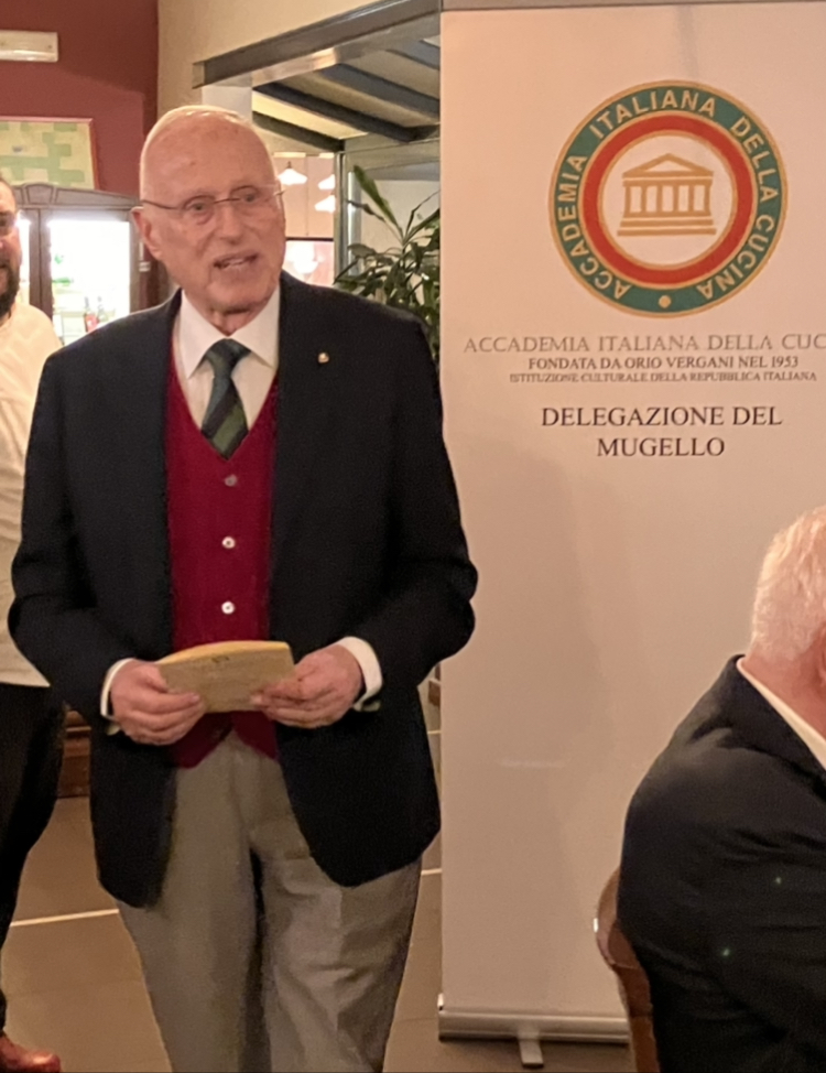 Per la Conviviale della Cultura la Delegazione del Valdarno Fiorentino si è riunita al ristorante di Perlamora, un delizioso resort in località Pavelli, sulle colline di Figline Valdarno. La struttura è anche sede di incontri ed eventi culturali, promossi dai gestori Lorenzo Melani e Perla Bonistalli, volti alla valorizzazione del territorio e dell’arte agraria, ma anche alla conoscenza della musica, del teatro e della scienza. Il tema scelto per la serata, organizzata dal Simposiarca Ruggero Larco, è stato: “I 70 anni dell’Accademia Italiana della Cucina da Orio Vergani ad oggi”. Durante la serata Ruggero Larco ha raccontato la nascita dell’Accademia, raccontando alcuni aneddoti sulla vita di Orio Vergani, giornalista, fotografo e scrittore (foto 1). Il menù, proposto dal cuoco Antonio Rivelli, ha visto in rassegna: antipasto di verdure di stagione fritte accompagnate da un Vermentino di Perlamora, carabaccia, filetto di maiale con riduzione al Chianti e lardo di Colonnata, piattelle e, per finire, crostata di frutta con crema accompagnata da vini dolci della casa (foto 2). In abbinamento ai piatti è stato scelto un buon vino rosso delle Terre di Pavelli, prodotto all’interno della fattoria. Tra un piatto e l’altro il Simposiarca ha illustrato il menù con dovizia di curiosità sulla carabaccia, la zuppa di cipolle toscana amata già da Caterina de’ Medici e portata anche alla corte di Francia. Tutta la conviviale si è svolta in un clima allegro e attento ai temi trattati (foto 3). In chiusura di serata, il Delegato Sandro Fusari e il Simposiarca hanno ringraziato i titolari e il cuoco, consegnando loro alcuni volumi dell’Accademia (foto 4).