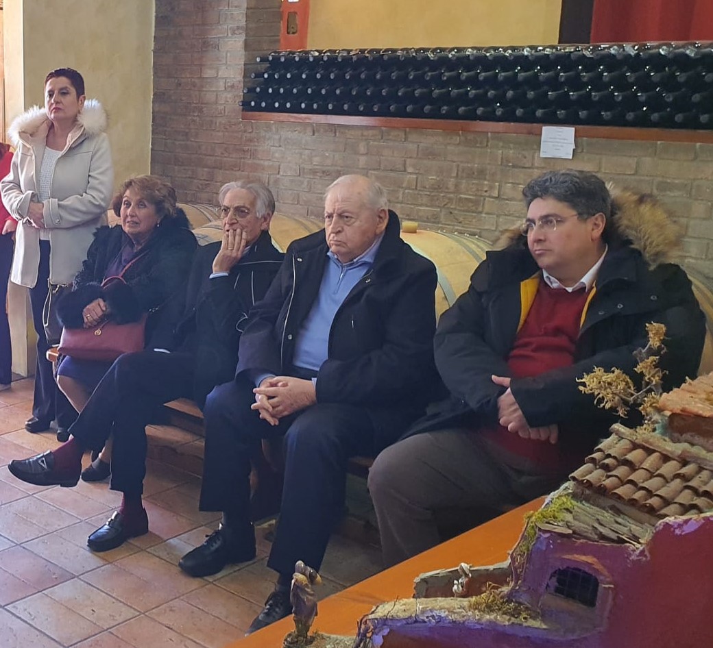 L’attività di ricerca, studio e valorizzazione delle tradizioni, anche quelle meno note del territorio cosentino, ha portato la Delegazione di Cosenza (foto 1) a visitare la cantina archeologica Acroneo sita in contrada Serricella del comune di Acri, nell’immediato entroterra che conduce verso l’altopiano silano. Il progetto Acroneo gode del patrocinio della Scuola Archeologica di Matera (UNIBAS - Università della Basilicata) e si sostanzia nella produzione di vino in anfore con la metodologia degli antichi romani. Il disegno usato è unico perché frutto di una ricerca personale del titolare Francesco Gabriele Bafaro (foto 2) archeologo per studi e passione. Le anfore sono state realizzate a mano da artigiani di fiducia, senza l'aggiunta di smalti o altri materiali e sono interrate. Anche la chiusura delle stesse rispetta l'antica tradizione che prevede l’esclusivo utilizzo di materiali naturali come legno e pietre (foto 3 e foto 4). La prosecuzione conviviale nell’attigua trattoria “Sotto Sopra” ha costituito l’occasione per degustare i vini prodotti con i vitigni Magliocco ed Aglianico in abbinamento con i salumi ed i formaggi della tradizione locale così come con i piatti a base di paste fatte a mano, i fusilli al ferretto con il sugo di capra ed i secondi di carni ovine provenienti dai vicini pascoli.
