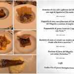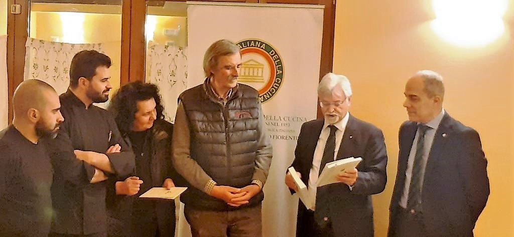 La Delegazione si è ritrovata presso il ristorante L’Antica Porta di Levante a Vicchio (FI) per la riunione conviviale dedicata alla Cultura, con la gradita presenza del Segretario Generale Roberto Ariani che nel suo bellissimo intervento (foto 1) ha comunicato la notizia della candidatura ufficiale della Cucina Italiana a “Patrimonio Culturale Immateriale dell’Umanità”, sottolineando l’impegno profuso dal Presidente Paolo Petroni per il conseguimento di tale importante risultato. La cena è stata preceduta da un’approfondita riflessione sui cereali, in omaggio al tema dell’anno, a cura di Lisetta Ghiselli, Ph.D. DAGRI dell’Università di Studi di Firenze, che ha intrattenuto i numerosi Accademici soffermandosi in particolare sui grani antichi, sulla evoluzione dei tipi di frumento, dalle forme selvatiche ai grani moderni, sottolineandone gli aspetti nutrizionali e funzionali (foto 2, la dott.ssa Ghiselli durante la relazione, Accademici e ospiti). In perfetta sintonia con il tema della serata, lo chef Cristian Borchi ha proposto e preparato buonissimi piatti (foto 3, il menu e alcuni dei piatti serviti) utilizzando vari tipi di cereali del territorio, a dimostrazione dello sviluppo che anche i grani antichi stanno avendo nell’agricoltura mugellana e conseguentemente in cucina. Originale e assai apprezzato l’abbinamento della birra di segale alle prime due portate. Molto elevato il gradimento del menu da parte degli Accademici, che hanno ringraziato, tra gli applausi, lo chef Borchi e la brigata di cucina insieme al personale di sala, che ha svolto un servizio premuroso e attento sotto la mirabile guida di Simone Draisci (foto 4, l’intero staff con il Segretario Generale Ariani e la Delegata Monica Sforzini).