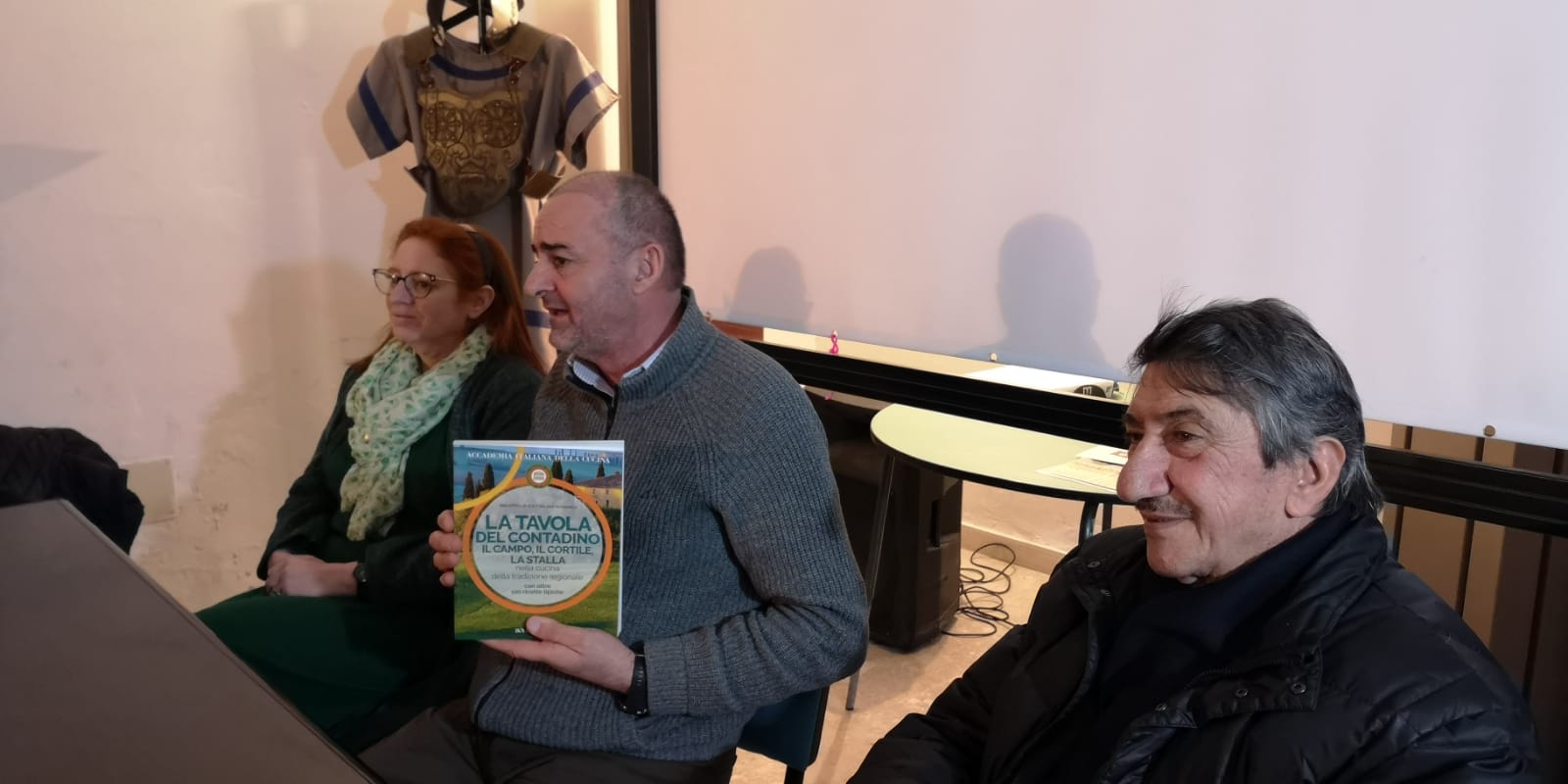 Dopo un interessante incontro nel Museo Civico della città di Corfinio, dove si è parlato di cucina dell'antica Roma, si è tenuta la consueta riunione conviviale del mese della cultura nel ristorante Excelsior di Corfinio. Foto 1. Un momento dell'incontro presso il museo: Il Delegato, il Vicesindaco ed il Presidente della Proloco. Foto 2. Saluti del Delegato agli Accademici e ospiti durante la Conviviale.