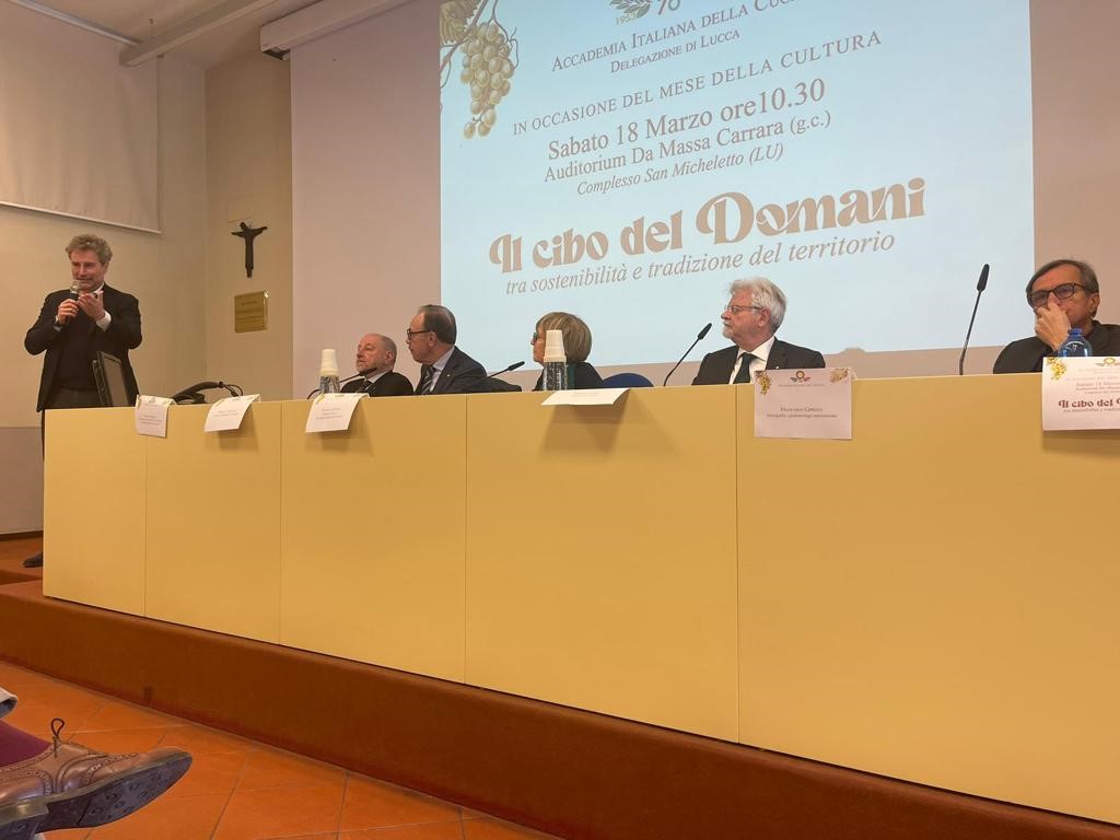 Lo scorso 18 marzo la Delegazione di Lucca ha organizzato all’Auditorium da Massa Carrara, Complesso di San Micheletto, un incontro sul tema “il cibo del domani tra sostenibilità e tradizione del territorio”. Davanti ad un numeroso pubblico, formato anche da diverse classi di studenti delle superiori, la Delegata di Lucca della, Daniela Clerici, ha introdotto il tema e presentato i vari oratori, con un particolare ringraziamento alle autorità intervenute, nelle persone di Mario Pardini, Sindaco di Lucca e Luca Menesini, Presidente della Provincia, che ringraziando per l’invito hanno sottolineato l’importanza del tema quale sfida del prossimo futuro. Moderati dall’Accademico Ruggero Larco, si sono alternati sul palco Alberto Petracca, Coordinatore Territoriale della Toscana Ovest, Massimo Vincenzini, Presidente della Accademia dei Georgofili oltre che Delegato di Empoli dell’AIC; Il Dr. Cipriani, Direttore di Epidemiologia della ASL Firenze Centro. Ha concluso l’incontro la Delegata Daniela Clerici ringraziando gli oratori e soprattutto il numeroso pubblico, auspicando un contributo di tutti per una maggiore attenzione dovuta ad un argomento che ci riguarda tutti, e riguarda soprattutto la nostra salute, quale è la corretta alimentazione. All’incontro è seguita la Conviviale accademica, organizzata presso il Ristorante Gli Orti di Via Elisa.