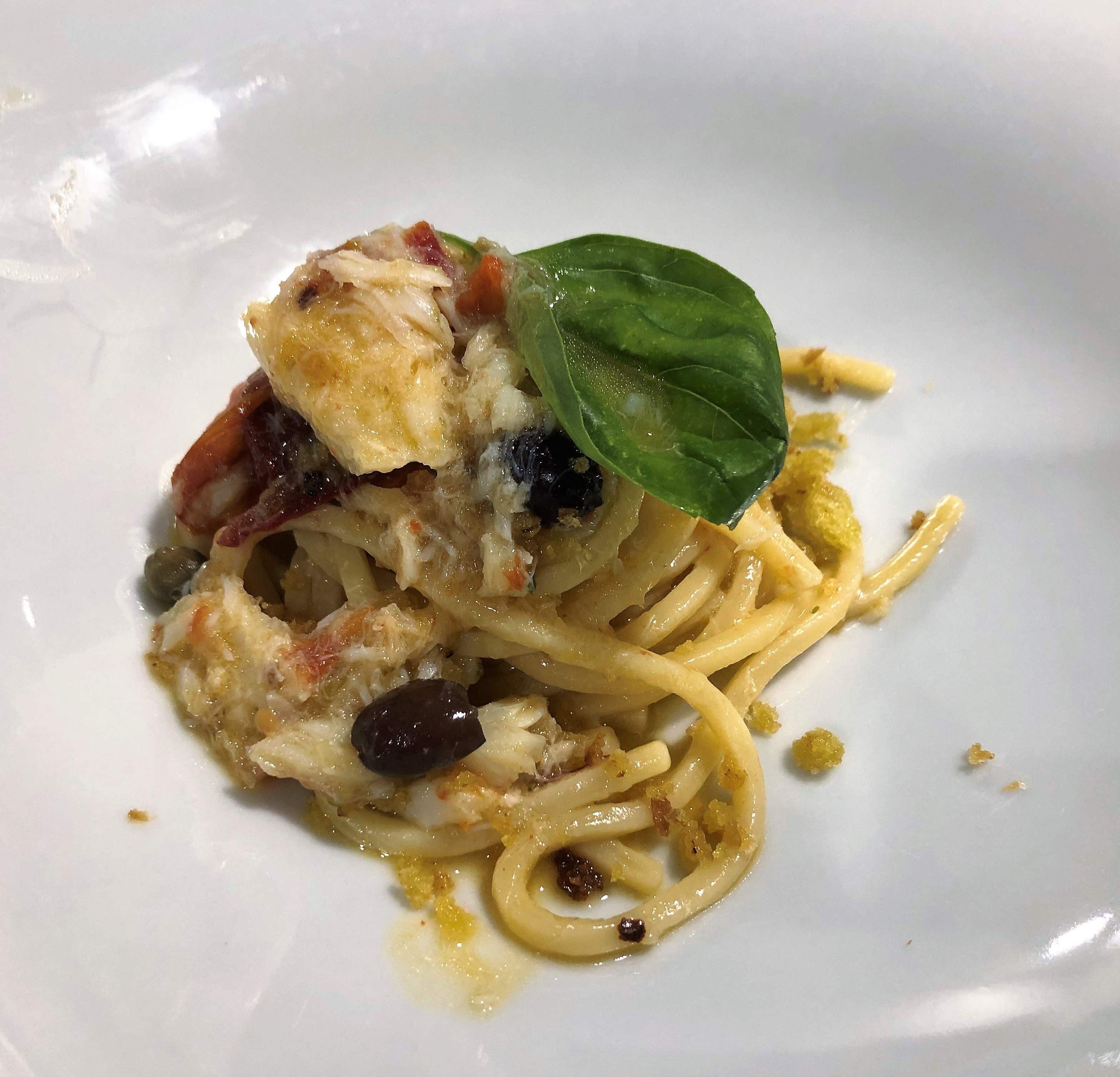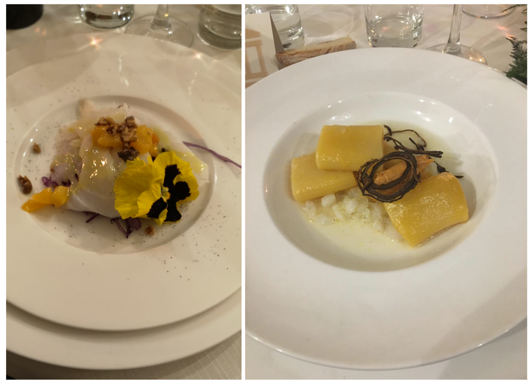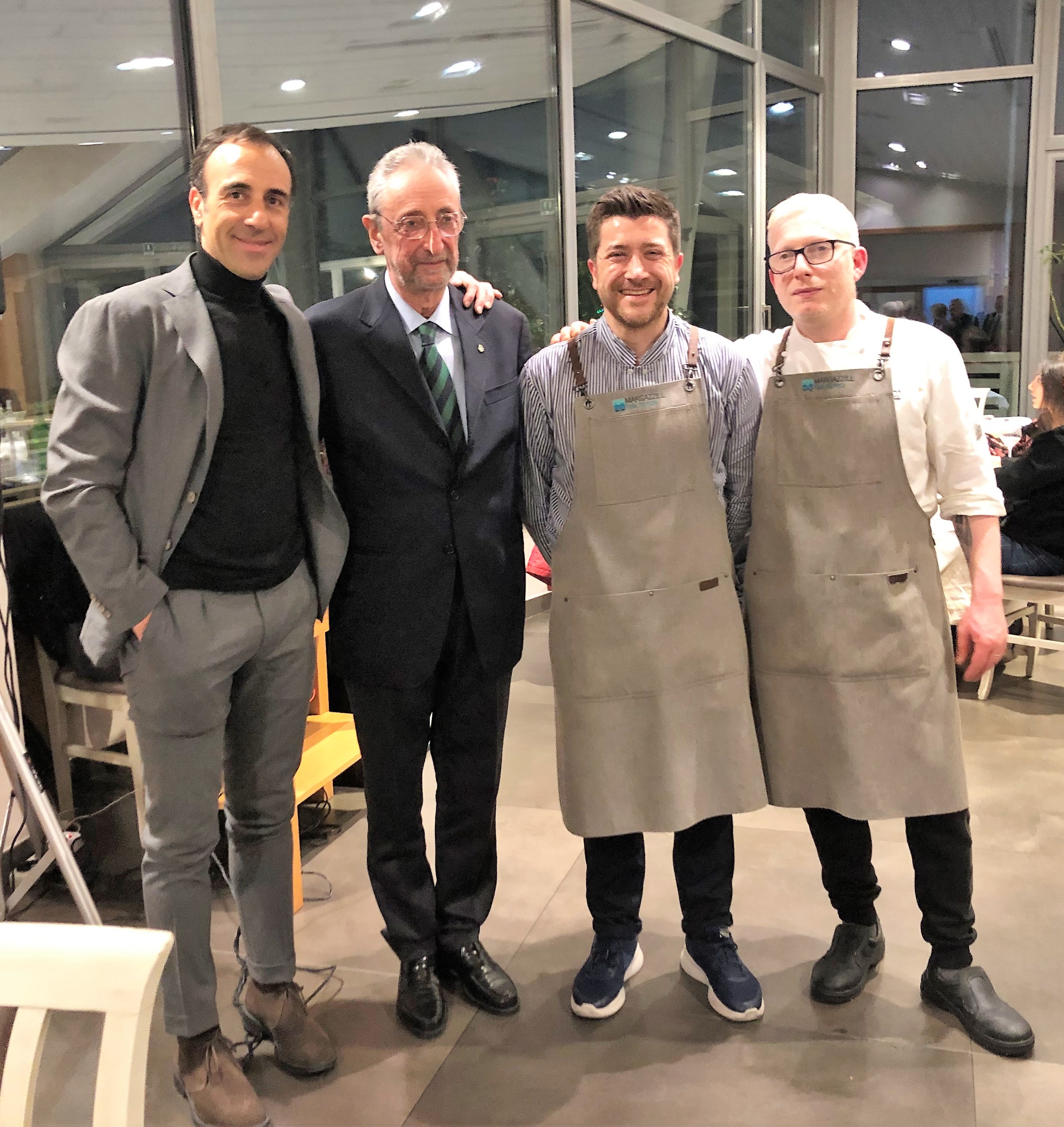 “Il baccalà in tavola” al centro della riunione conviviale della Delegazione di Pescara, nell’ambito della giornata di studio promossa dal Coordinamento territoriale delle Delegazioni abruzzesi. La serata, che si è svolta al ristorante “Margazzill - Idee dal Mare” di Città S. Angelo, è iniziata con una interessante dissertazione tenuta dal Delegato Giuseppe Fioritoni e da Massimo Monti, responsabile di un’azienda leader nella commercializzazione del baccalà norvegese dal 1903. Interessante e sfizioso il menu scelto dal Simposiarca Gianluca Galasso e realizzato dalla brigata di cucina del ristorante, guidata dal titolare Claudio D’Arcangelo e dallo chef Daniele Terrenzio. Entusiasti e deliziati i numerosi Accademici presenti alla conviviale insieme a familiari e amici. La conviviale territoriale abruzzese è stata anche l’occasione per ufficializzare l’ingresso in Delegazione della nuova Accademica Valeria Toppetti. Foto 1. La neo Accademica Valeria Toppetti e il Delegato Giuseppe Fioritoni Foto 2. Da sx, il Simposiarca Gianluca Galasso, il Delegato e Massimo Monti Foto 3. Simposiarca e Delegato con Claudio D’Arcangelo e Daniele Terrenzio. Foto 4. Lo spaghettone quadro con baccalà, pomodorini confit, capperi, olive e pane fritto.