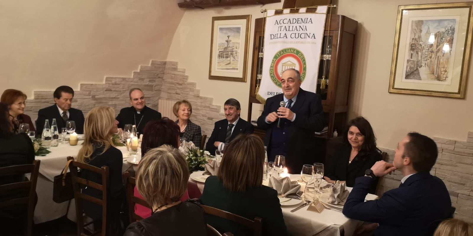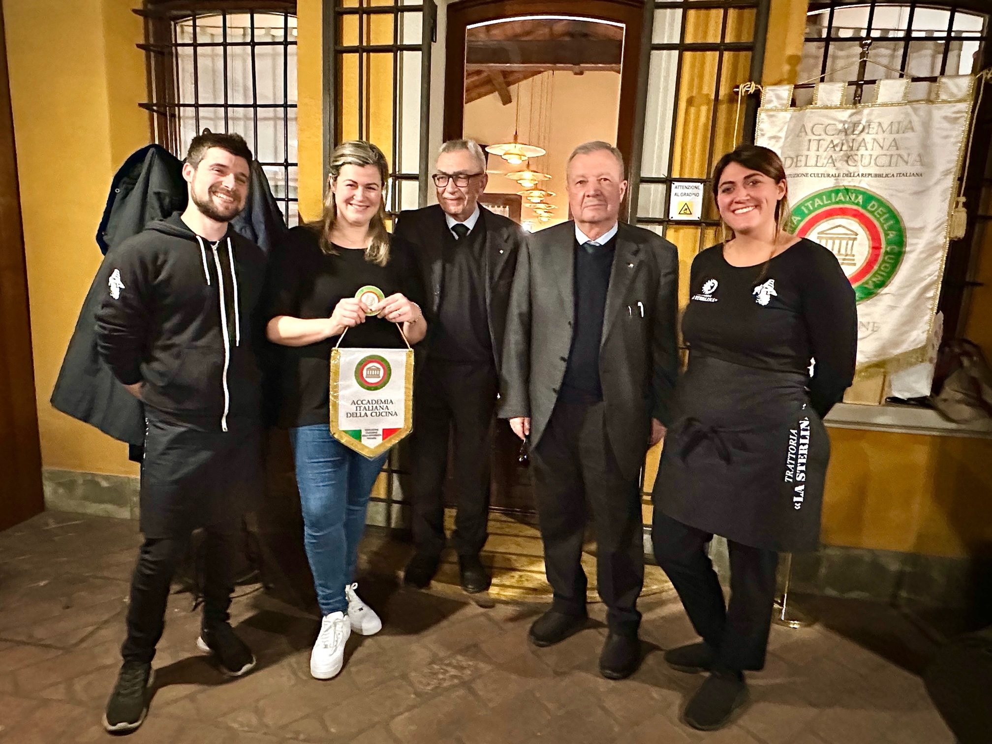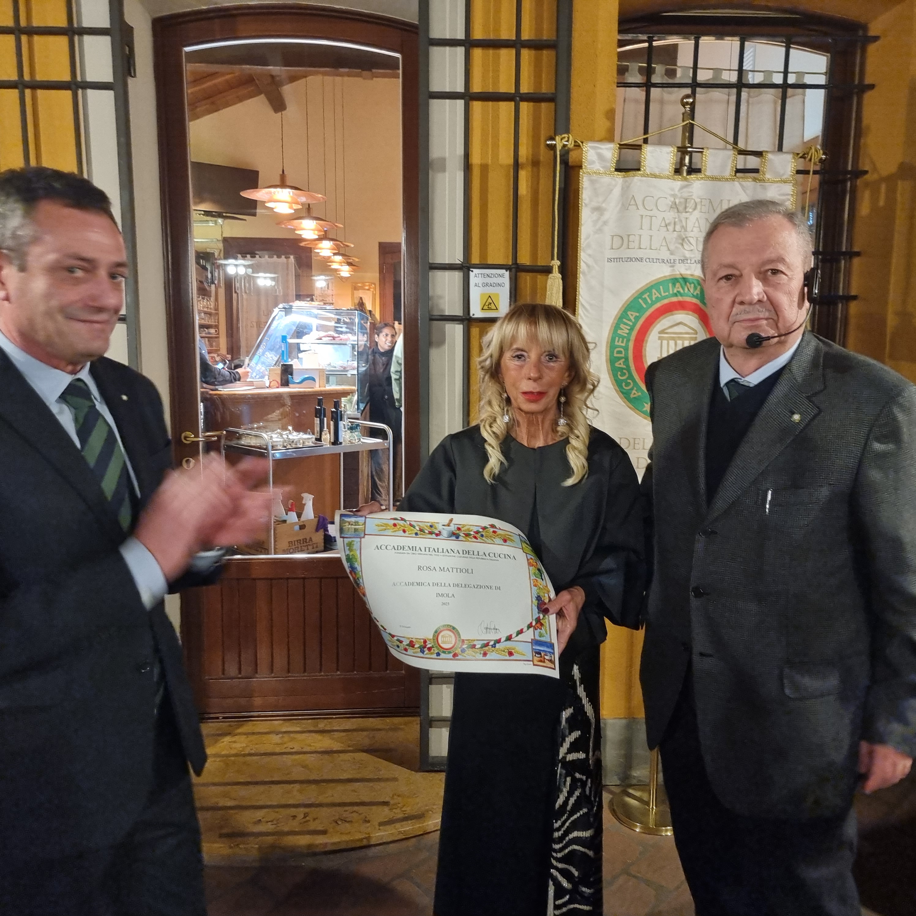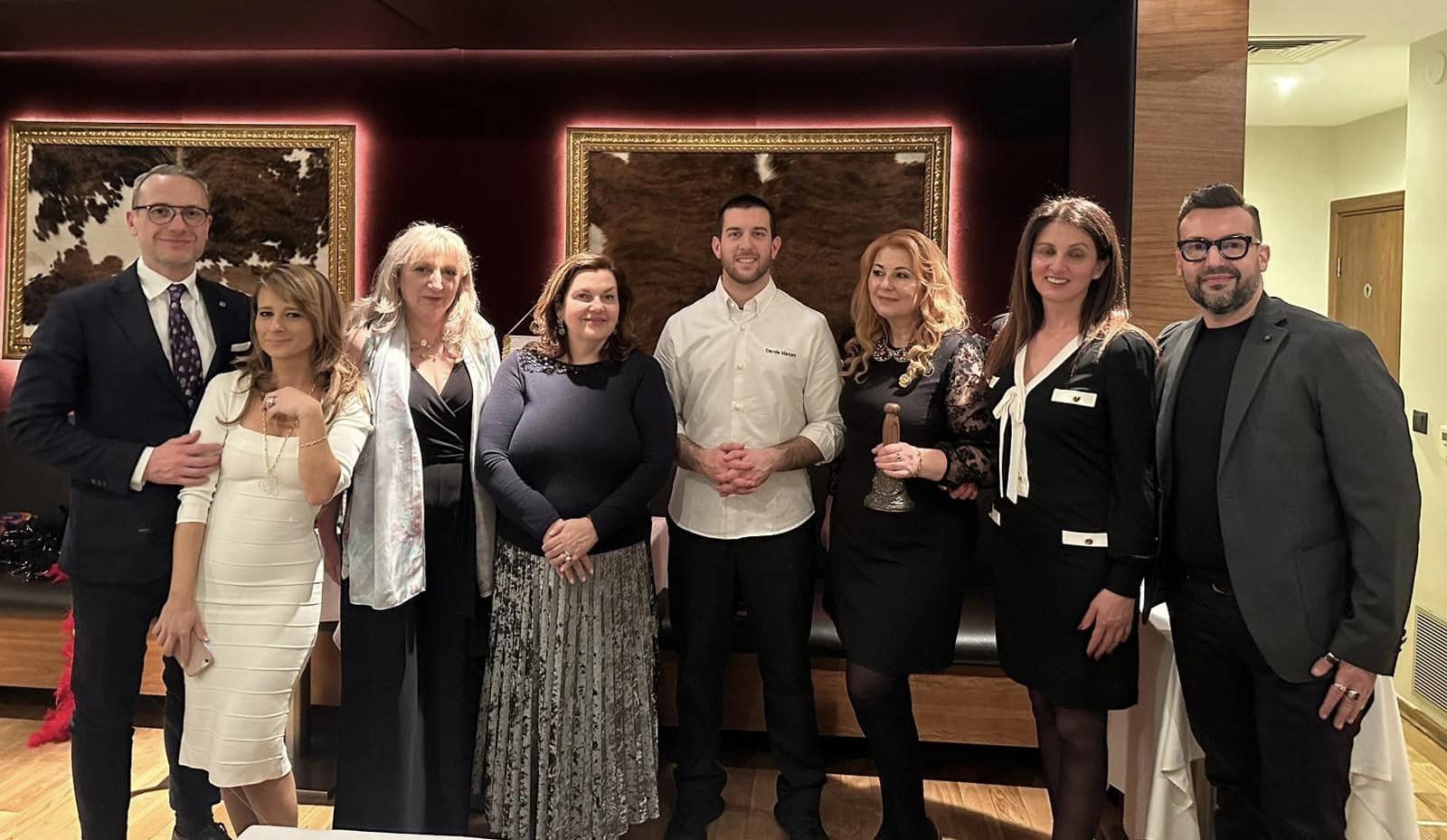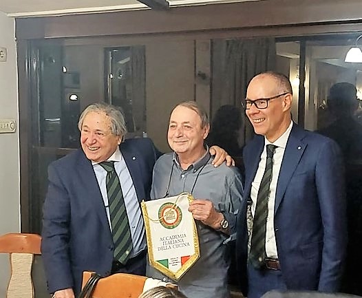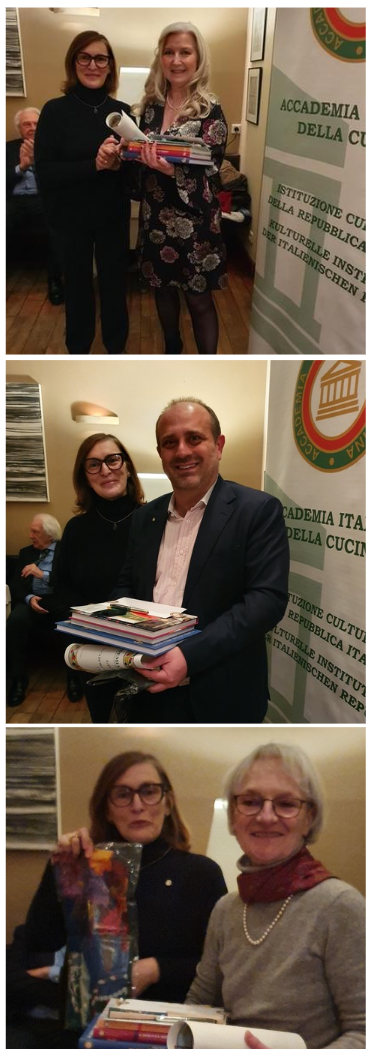 Riunione conviviale della Delegazione di Bucarest al ristorante “Da Giulio” in occasione della quale sono state ufficialmente accolte le due nuove Accademiche Micaela Soldini e Ileana Sinisi con consegna del rituale cadeau d’ingresso (foto 1 con il Delegato Luigi Zaccagnini e il Vice Delegato Luca Rabbia) . Dopo il piacevole benvenuto, il Delegato ha rinnovato lo spirito di sobrietà e amicizia che ha sempre contraddistinto la Delegazione di Bucarest sottolineando altresì l’importanza della collegialità e della Consulta. Dopo la degustazione del ricco menu, nella piena condivisione di tutti gli Accademici, è stato espresso il particolare apprezzamento e ringraziamento al proprietario del ristorante Antonio Domenichini per il suo costante impegno trentennale nel rispetto qualitativo della cucina italiana e, particolarmente, delle sue tradizioni laziali (foto 2).