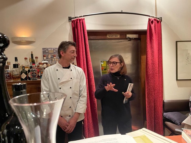 La prima conviviale del 2023 a Francoforte è stata dedicata ai cibi portafortuna, da consumarsi in particolari occasioni (fine, principio di ogni anno o nozze) in quanto sinonimo di fortuna, prosperità, salute. La lista dei talismani gustosi è lunga: legumi (lenticchie), verdure invernali (verza o cavolo nero) carni (maiale), riso, peperoncino, frutta (uva, melagrana, mandarini, frutta secca). Lo chef del ristorante Reuter’s, Franco Scavazza, si è divertito a giocare con la simbologia scaramantica di questi ingredienti preparando per gli Accademici un delizioso menu propiziatorio: una bietola con ricotta, ceci, melagrana e peperoncino, seguita da lonza di maiale in crosta di miele ed erbette con lenticchie al cedro. Infine un ottimo semifreddo alle mandorle caramellate con composta di uva. Ottimi i vini in abbinamento. Durante la cena è stato dato il benvenuto a tre nuovi Accademici: Ariane, Giuseppe e Maria Caterina.