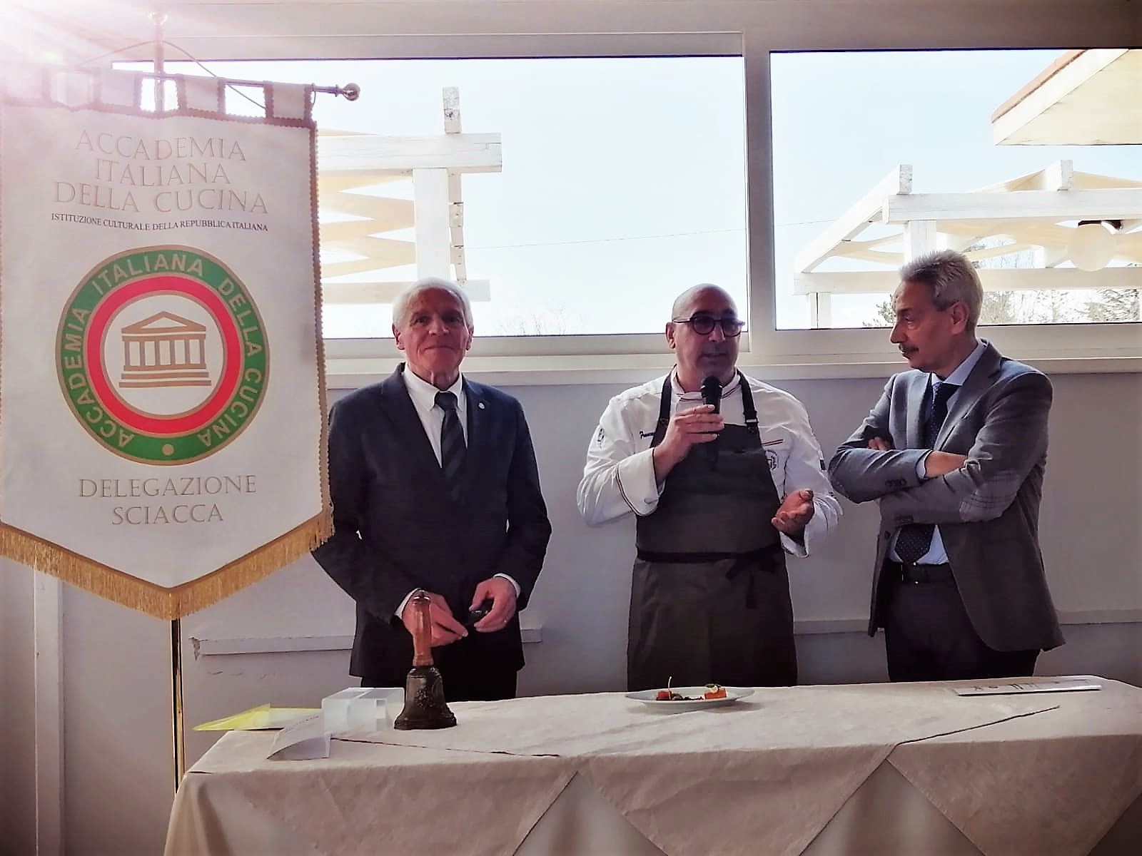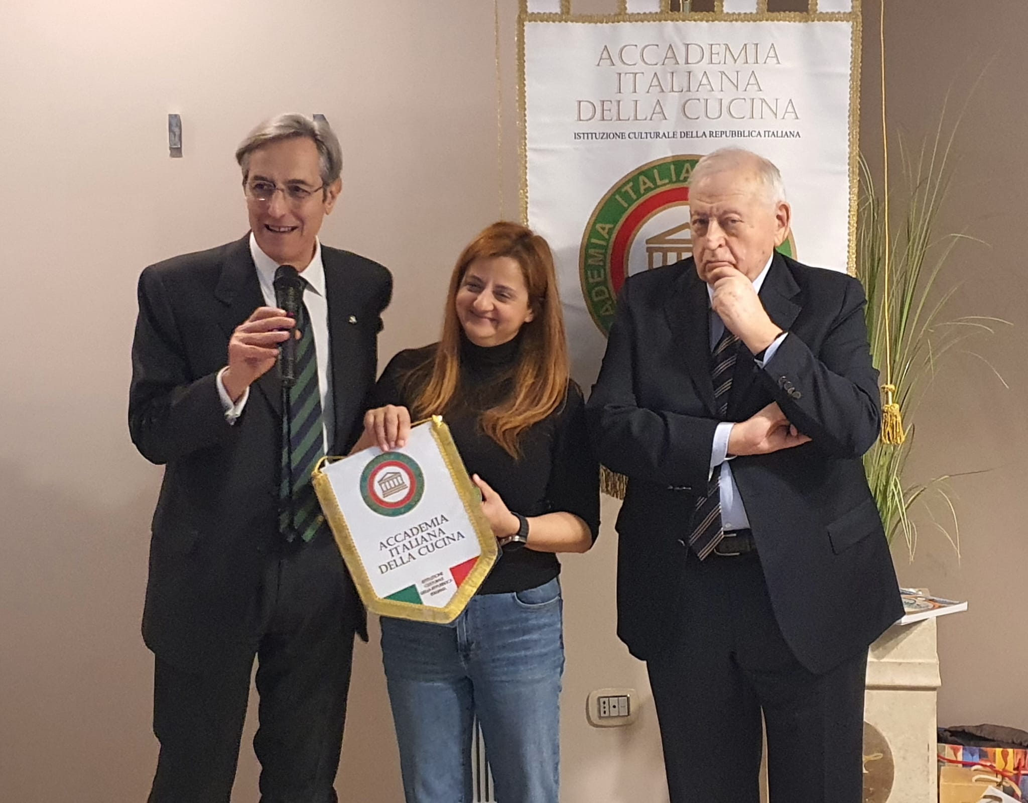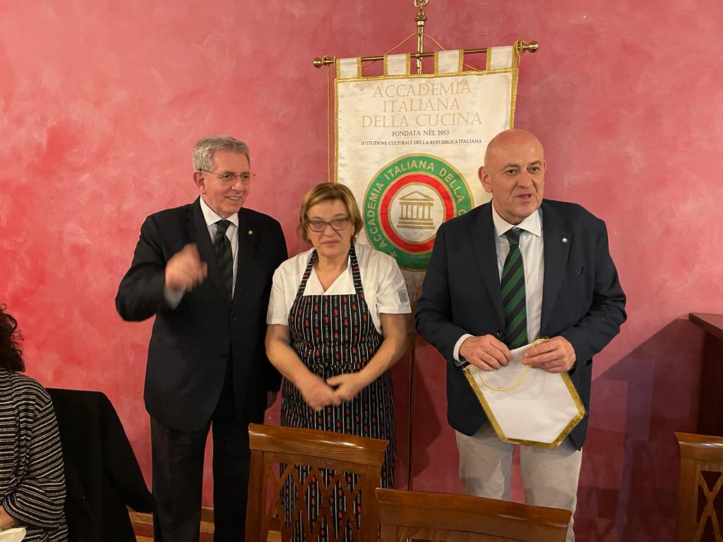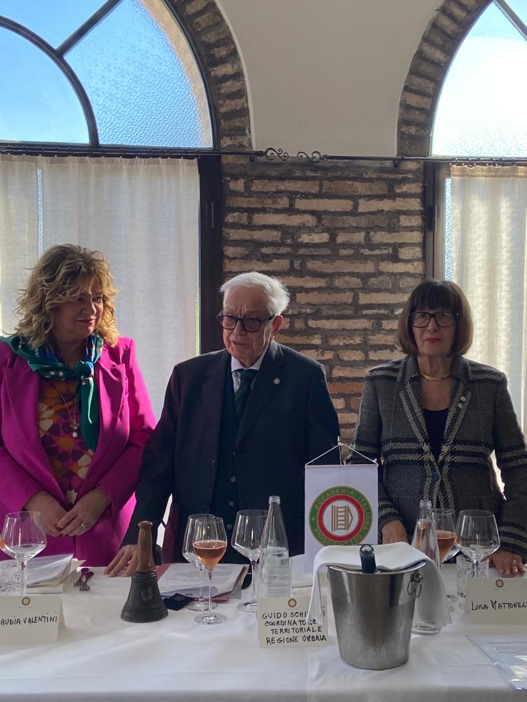 Si è tenuta il 4 febbraio, presso il ristorante “Al Monastero” di Bevagna, la cerimonia del “passaggio della campana” nella Delegazione di Foligno. Presenti il Coordinatore Territoriale Umbria Guido Schiaroli, il Direttore del Centro Studi Territoriale Giuseppe Fatati, Delegate e Delegati umbri (foto 1). La Campana, simbolo della continuità e dei valori dell’Accademia, è passata dalla Delegata Luisa Vincenti Mattonelli a Claudia Valentini (Foto 2 da sinistra: nuova Delegata C. Valentini, CT Guido Schiaroli, past Delegata L. Vincenti Mattonelli). Durante la serata, il CT Schiaroli ha portato ai presenti il saluto del Presidente Paolo Petroni ed ha tracciato una breve storia della Delegazione fondata da Carlino Suardi nel 1974. Claudia Valentini ha dichiarato il proprio impegno ad assumere l’incarico di Delegata nella logica della continuità e della tradizione, principi fondanti dell’Accademia, evidenziando tra gli obiettivi primari la difesa dei prodotti e dei piatti tradizionali del territorio. Durante la cerimonia l’Accademico Daniele Falchi ha improvvisato un allegro sonetto dedicato alle Delegate.