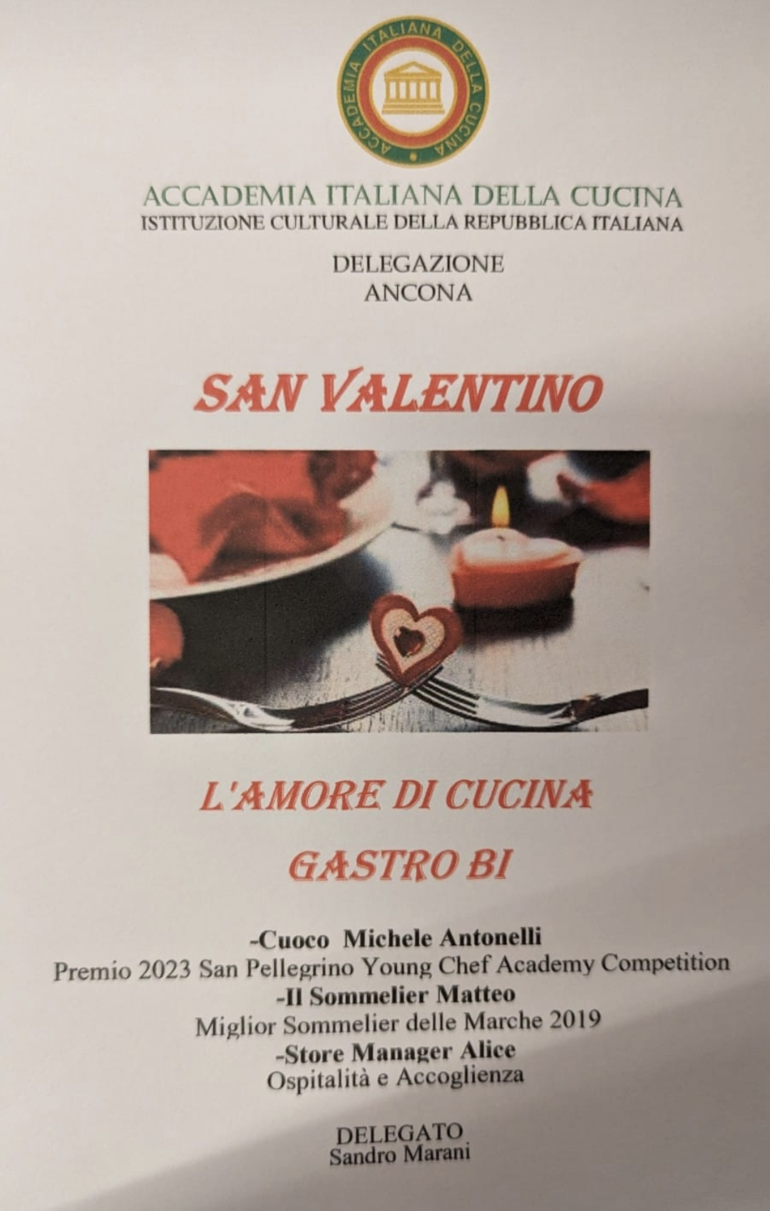 Bellissima serata accademia quella che si è svolta nella la giornata dedicata all’amore, il 14 febbraio 2023, presso l'enogastronomia GASTRO-BI a Villa Musone (AN). Una degustazione in cui viene esaltato l’amore per il cibo, il vino e il territorio. Arte dell’accoglienza, passione per la cucina e la creazione di piatti originali gourmet con prodotti locali genuini coltivati come una volta, accompagnati da un’accurata scelta dei vini con abbinamenti perfetti. Come segnalato dal Simposiarca Piero Granarelli e ribadito dal Delegato Sandro Marani, la Delegazione avrà sicuramente modo di ritornare ad apprezzare le altre specialità che con grande passione, competenza, umiltà e amore offre Gastrobi, locale dalle grandissime potenzialità.
