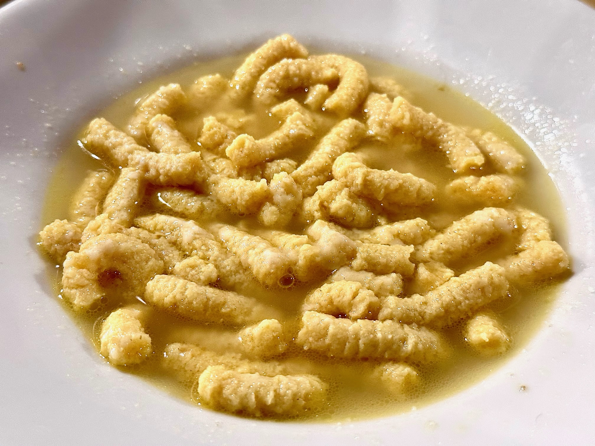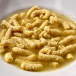 È un esempio di vera trattoria di campagna con cibi prodotti nel territorio imolese il locale che ha accolto la Delegazione in un'affollata riunione conviviale che ha largamente soddisfatto gli Accademici. La cucina de "La Sterlina" ha confermato che i piatti che caratterizzano questo territorio che apre le porte alla Romagna mantengono quei sapori e profumi che spiegano cosa significhi una scelta votata al rispetto delle preparazioni tradizionali. Dai passatelli in brodo alle carni grigliate col fritto misto, dagli strozzapreti ai cappellacci, senza tralasciare la zuppa inglese, è stato un susseguirsi di gustose pietanze premiate con un prolungato plauso alla famiglia Dalmonte. In apertura il momento più importante della serata con la cerimonia di investitura e di calorosa accoglienza per due nuove Accademiche: Silvia Villa e Rosa Mattioli. Foto 1. L'aCCADEMICO Giancarlo Fiorentino presenta la nuova Accademica Rosa Mattioli. Foto 2. Il Consultore Michele Gamberini presenta la nuova Accademica Silvia Villa. Foto 3. Consegna del guidoncino dell'Accademia alla Famiglia Dalmonte con il Simposiarca Sergio Galassi e il Delegato Antonio Gaddoni. Foto 4. Passatelli in brodo.