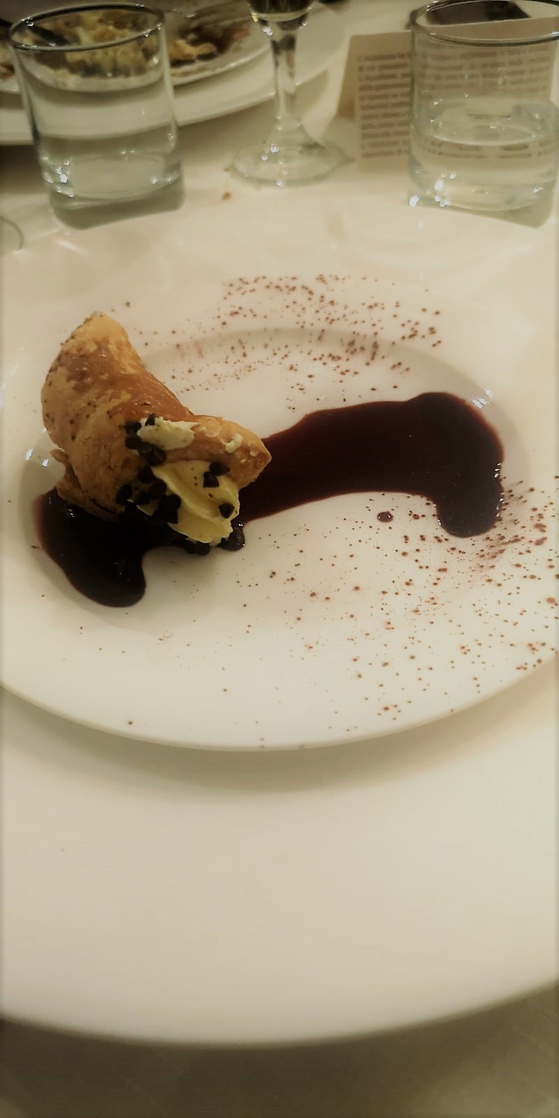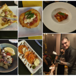 Anche a Sulmona si è tenuta la riunione conviviale del coordinamento territoriale abruzzese incentrata sul baccalà. La Delegazione si è riunita nel ristorante Il Vecchio Muro nel capoluogo peligno. Foto 1. Il prof. Gabriele Di Francesco tiene la relazione dal titolo "Il Gadus morhua storie e percorsi nel tempo dalle Lofoten all'Abruzzo". Foto 2. Il Delegato con il cuoco Cesare. Foto 3. Carpaccio di baccalà; schiaffoni con baccalà, cipolla di Tropea e distillato di pomodoro. Foto 4. Cannolo di sfoglia con crema al mascarpone e riduzione di Montepulciano.