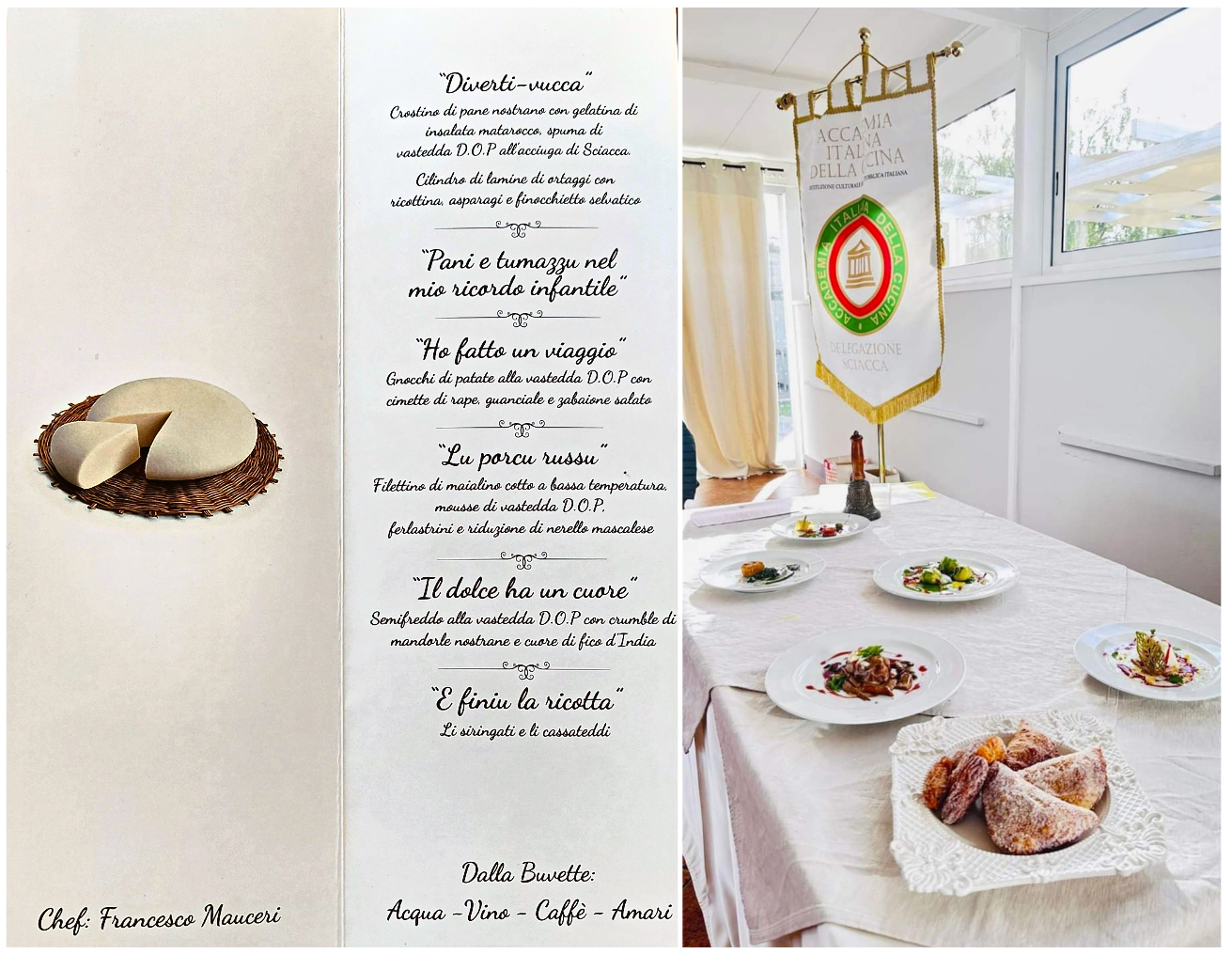 La Delegazione di Sciacca ha organizzato e trascorso a Santa Margherita di Belice una piacevolissima giornata all'insegna della cultura e della convivialità, così come dettano i canoni base dell'Accademia. Dopo avere apprezzato il "Parco del Gattopardo" ed effettuato il percorso museale, nella prima mattinata è stato gustato un prodotto tipico del comprensorio del Belice: la ricotta. È seguita la visita al caseificio “La Sala" dove il prof. Portolano docente di zootecnia presso l’università di Palermo, ha raccontato ai presenti la storia e il processo che conduce alla realizzazione della "Vastedda", un prodotto unico perché è il solo formaggio a pasta filata ottenuto dal latte ovino. A seguire gli Accademici hanno raggiunto il ristorante "Opuntia", dove lo chef Francesco Mauceri ha dato un saggio della sua maestria presentando tutti i piatti a base di "Vastedda” tra cui anche il dolce. A fine giornata sono stati accolti tre nuovi Accademici in Delegazione.