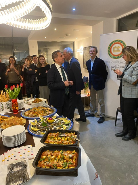La Delegazione di Londra ha deciso di ripetere l’esperienza di alcuni anni fa offrendo agli Accademici l’opportunità di partecipare ad una "master class" esclusiva. Lo chef siracusano Carmelo Carnevale ha preparato un menu a base di specialità siciliane, offrendo anche un'interessante spiegazione sulla cucina delle Tre Valli. Ha narrato le origini storiche di alcuni piatti e come la tradizione si sia evoluta in alcune ricette che oggi tengono conto di prodotti tipici del territorio. La serata, esclusivamente riservata a una quarantina di Accademici, è iniziata con un aperitivo di sfincione e panelle accompagnato da Prosecco millesimato. Lo chef, sotto lo sguardo attento dei partecipanti, ha realizzato con la collaborazione straordinaria di alcuni soci volenterosi ed entusiasti, rigatoni con pesto invernale alla Norma, un piatto servito caldo in aggiunta al ricco buffet preparato in precedenza dallo chef. Tra le portate, apprezzatissima la caponata bianca, il tortino di sarde a beccafico e la parmigiana di melanzane non infornata. Come dessert i famosi cannoli di ricotta. Queste delizie sono state accompagnate da vini adeguati, bianco, rosso e moscato dolce. Grande divertimento e convivialità da parte dei presenti che hanno applaudito più volte lo chef Carmelo, apprezzandone anche la simpatia e disponibilità.
