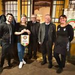 La Delegazione ha visitato la polpetteria–pizzeria Urban Lescà, locale fondato da diversi anni in pieno centro a Messina e apprezzato e frequentato non soltanto per la pausa pranzo. L’elegante e spazioso locale, modernamente arredato, ha accolto una vastissima rappresentanza della Delegazione e numerosi ospiti, calorosamente salutati dal Delegato (foto 1) che ha anche presentato due dei nuovi Accademici, Marina Maugeri, figlia d’arte essendo stato il padre uno dei primi Accademici della Delegazione e Giovanni Randazzo, di fronte a un salone gremito (Foto 2). Il menu - che riproduce l'antica maschera messinese Peppe Nnappa - strettamente aderente alla tradizione messinese e siciliana carnevalesca è stato illustrato dal Simposiarca Giuseppe Termini seguito da una breve relazione di Patrizia Torricelli, studiosa del linguaggio, sulle origini del termine Carnevale, il cui simbolo gastronomico dolciario, tipico e peculiare di Messina, è la pignolata (Foto 3). Festosa e applaudita la consegna del guidoncino e della vetrofania ai titolari Francesco e Fabrizio Franchina e alla loro giovane squadra (Foto 4).