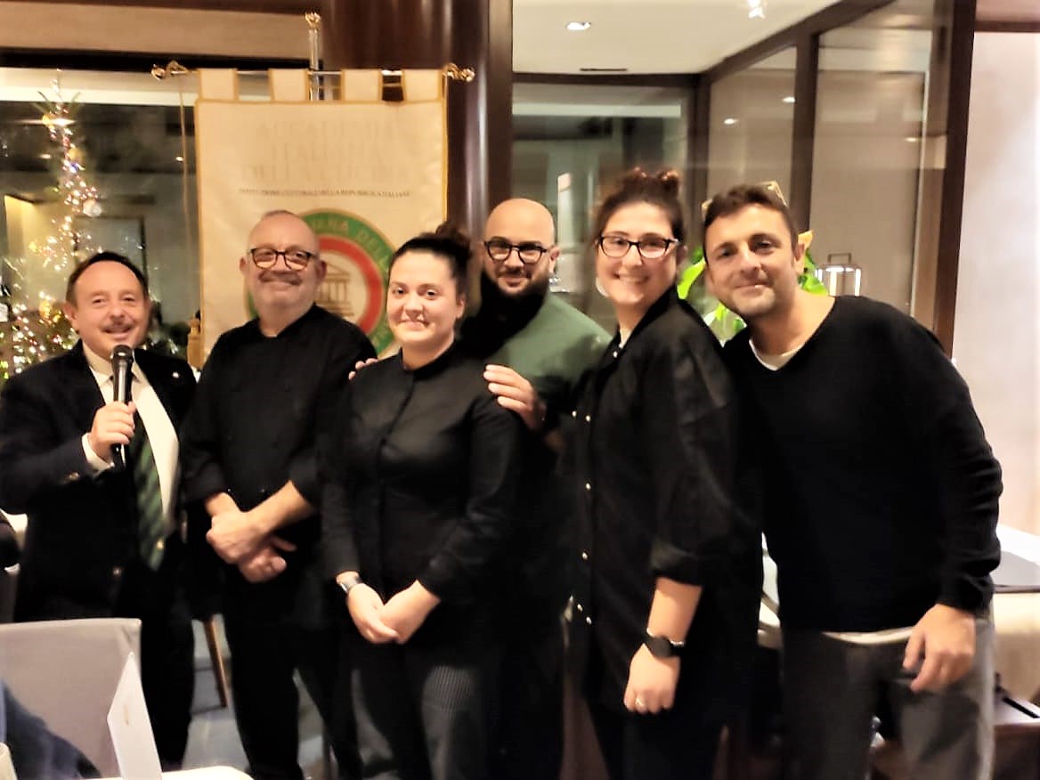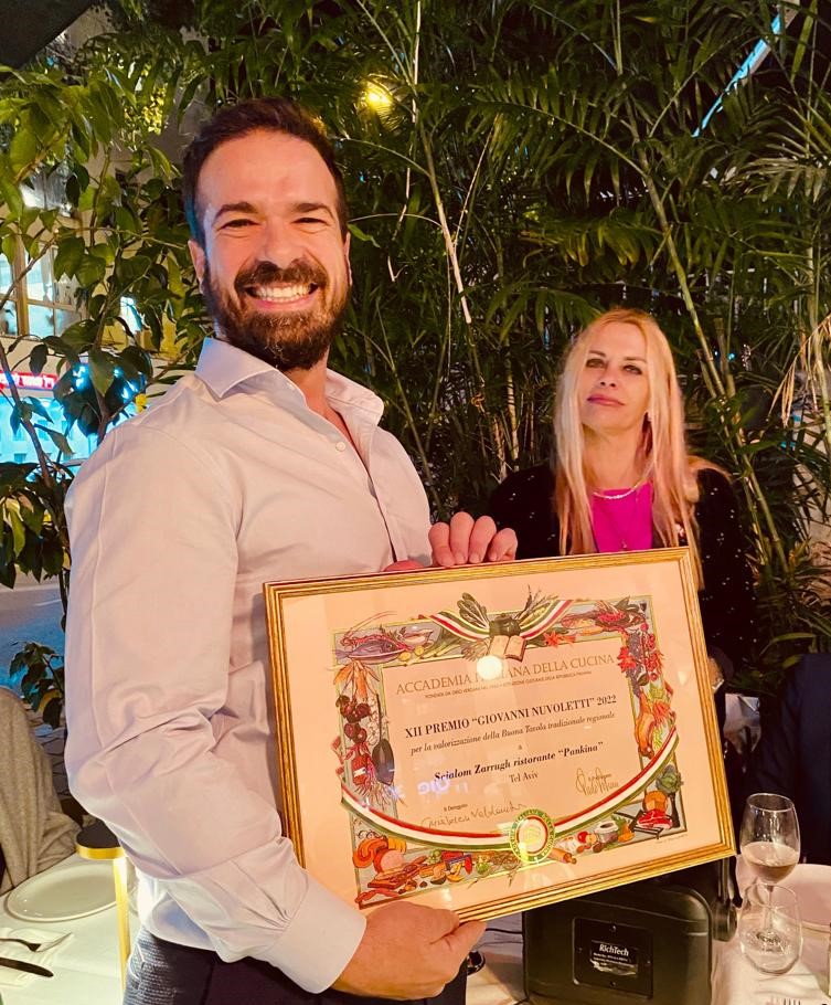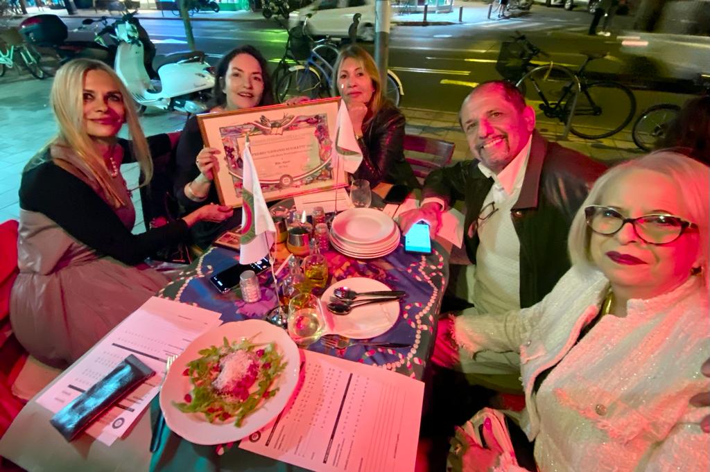 Ultimo appuntamento dell’anno a Tel Aviv, organizzato al ristorante Pankina di Scialom Zarrugh che ha ricevuto, in questa speciale occasione, il premio Giovanni Nuvoletti 2022 (il proprietario Zarrugh in foto 1 con la Delegata Cinzia Klein). Il menu scelto per la conviviale è stato molto ricco e caratterizzato da elementi ebraici italiani kosher (foto 2). Alla serata hanno partecipato tutti gli Accademici e molti funzionari dell'Ambasciata italiana in Israele (foto 3 Accademici e ospiti). Durante il convivio è stata insignita la nuova Accademica Tiziana Caldelli che ha ricevute le insegne dell’Accademia (in foto 4 con il marito Colonnello Gioacchino Violante).