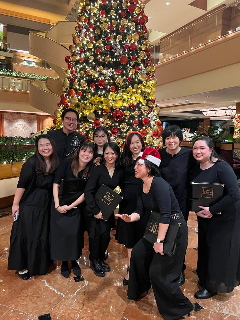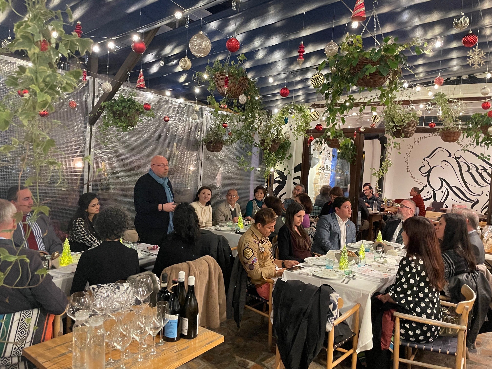 Riunione conviviale degli auguri presso Dolcetto al Regent Hotel di Singapore. Gli Accademici hanno ricordato e festeggiato Sant’Ambrogio e come da tradizione, la serata ha aperto le festività natalizie della Delegazione con il Coro tutto femminile, questo anno, della Schola Cantorum di Singapore diretta dal Maestro Albert Tay. I Christmas Carols hanno reso l’atmosfera festiva molto intensa e sono stati apprezzati da tutti gli Accademici e dai tanti ospiti. È stata un’emozione poter riprendere questa buona abitudine dopo un silenzio di tre anni. Lo chef Luca Beccalli, supportato dalla Simposiarca Giuseppina Pravato, ha preparato un piacevolissimo “Aperitivo Italiano” composto da tradizionali piatti natalizi: degni di nota e molto apprezzati da tutti, i carciofi gratinati e il risotto allo zafferano. Non sono mancati i brindisi con eccellenti bollicine e naturalmente il dolce natalizio per antonomasia, il panettone, apprezzato a Singapore non solo dagli italiani.