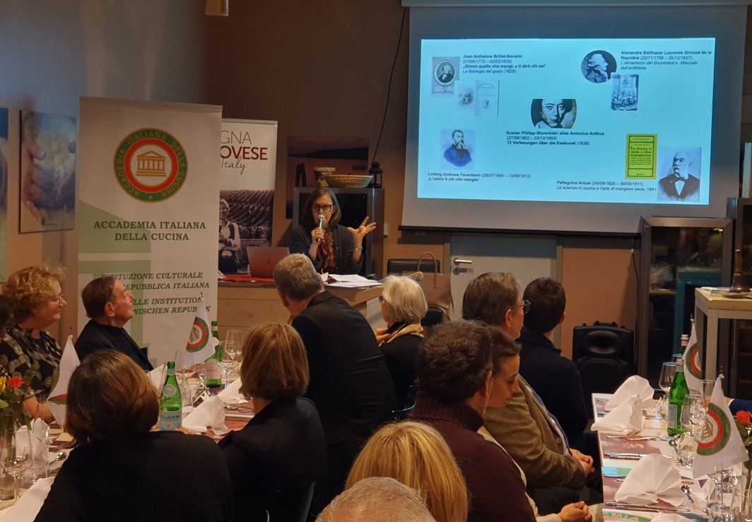 Quando e come si inizia a scrivere di gusto e perché? Quando e come cambia l’approccio verso la cultura del cibo? Quando e come nasce la nuova figura professionale dello ”scrittore di gastronomia”? Di questo si è parlato con la blogger Ariane Wirth-Piller ideatrice del food blog Tra dolce ed amaro. Rezepte und Geschichten aus Italien und dem Rest der Welt e special guest della serata tenutasi a Francoforte presso il locale InCantina. Deliziosa la cena preparata dello chef che ha presentato un Grand Tour sviluppando alcuni aspetti del tema della Settimana: sostenibilità e innovazione. Un menu di tre portate, in cui l’ingrediente comune denominatore, il pane secco, viene utilizzato nelle tradizioni regionali: cappellacci di zucca (Emilia-Romagna), pallotte cacio e uova (Abruzzo), torta di pane raffermo (Sicilia). Ottimi anche i vini d’accompagnamento. Tante le persone intervenute, attente e interessate ai temi della serata. L’evento si è svolto in collaborazione con IIC di Colonia e il Consolato Generale d’Italia.