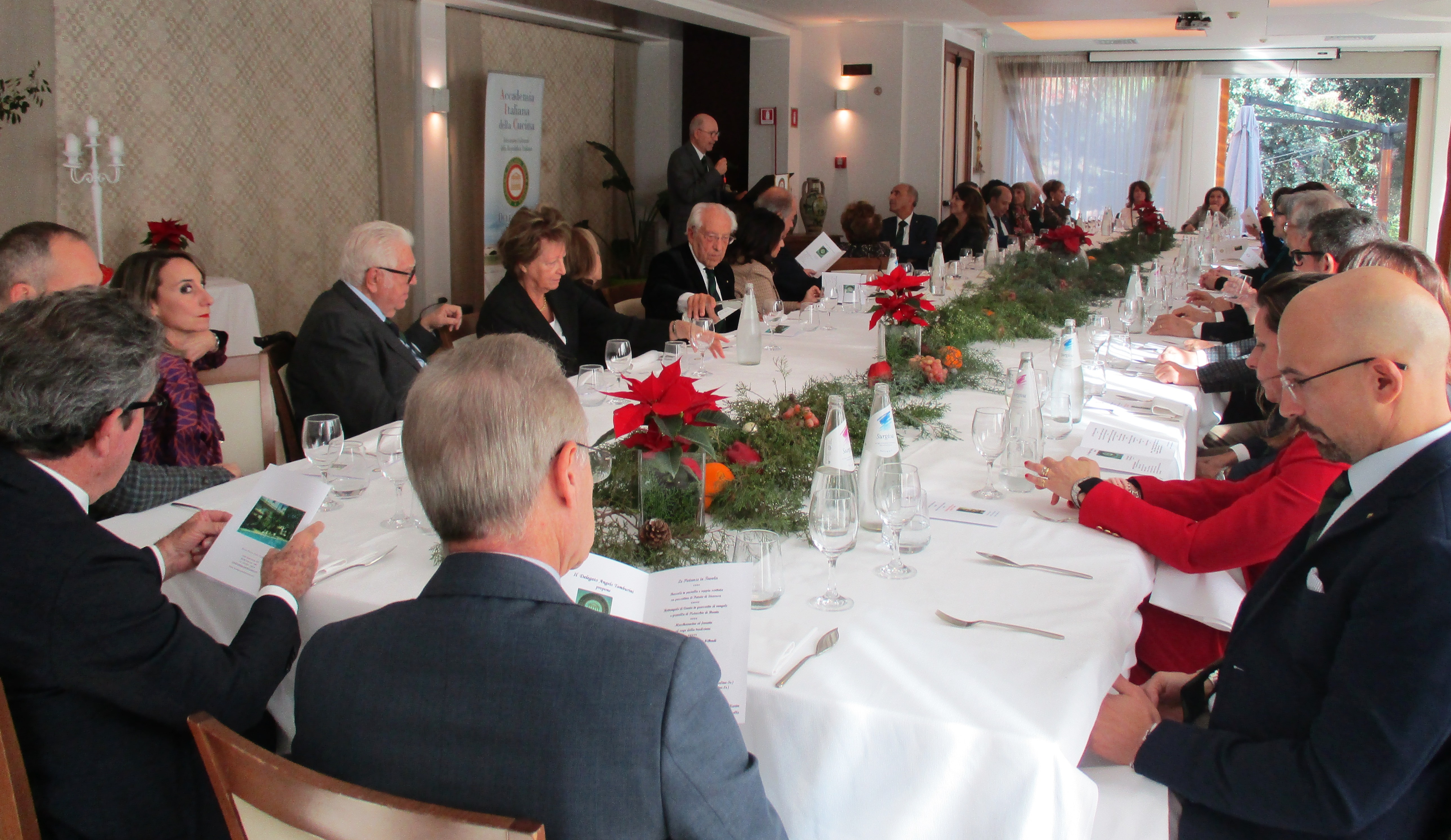 Natale tra amici, in un'atmosfera festosa e raccolta, riflessiva e gioiosa. Questo è stato lo spirito della conviviale degli auguri della Delegazione di Albenga e del Ponente Ligure, ricordando, come ogni anno, figure importanti della cultura del nostro Paese. Ugo Tognazzi, nel centenario della sua nascita, ha permesso agli Accademici di trascorrere una bellissima serata presso il Lamberti di Alassio assaggiando le sue ricette, idealmente suoi ospiti per un “Natale con Ugo”. La simpatia tra il figlio Giamarco e il Delegato Roberto Pirino ha permesso di creare un insieme di ricordi a tavola condivisi con tutti i presenti. Le portate proposte sono state il frutto di studio di menu natalizi e hanno riscosso apprezzamenti sinceri. Ottime polpette, ottimo maial tonnè, eccellenti le fettuccine alla Circeo dedicate all’amico Dino Risi e, per terminare, il bollito alla cremonese con la mostarda tradizionale. Un tocco di dolcezza con la "bavarese di tette" ricordando “La grande abbuffata”, poi frutta secca, datteri, pandolce genovese e i ricordi di tanti Natali e la speranza di altri ancora da vivere in amicizia accademica.