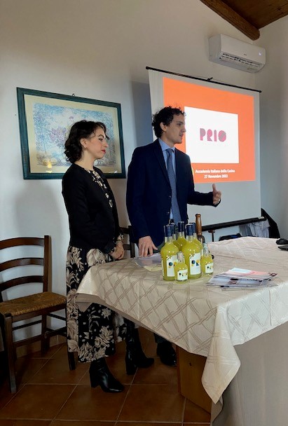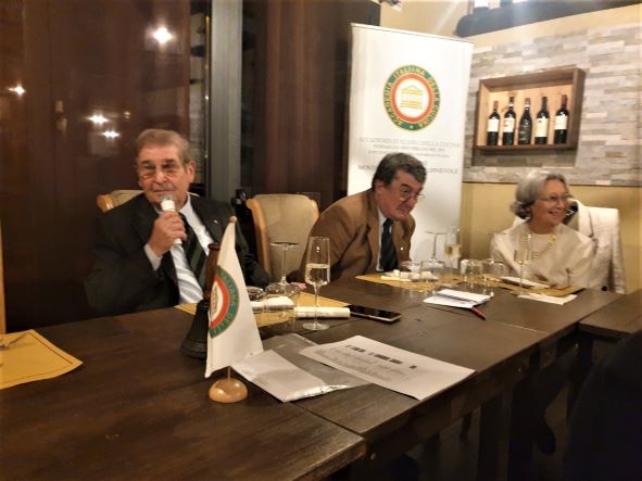 La riunione convivale presso il ristorante lo Sperone ad Alcamo è stata preceduta da una conferenza sul limoncello. I relatori inizialmente hanno fatto un excursus dal punto di vista storico e mitologico sulla provenienza della pianta del limone la quale non è una pianta autoctona né della Campania né della Sicilia, ma cresceva spontaneamente più di 4.000 anni fa in Persia, Palestina, India, Cina. A seguire i relatori hanno descritto la procedura della preparazione del limoncello, liquore prodotto dalla macerazione, in alcol etilico, di scorze di limone ricche di oli essenziali. Hanno spiegato che per la realizzazione del limoncello, si sono avvalsi di una ricetta tramandata dalla nonna e l’utilizzo di una varietà di limoni siciliani a coltivazione bio. A conclusione è stato fatto un plauso ai due relatori Danila Grosso e Raffaello Speciale. Dopo il pranzo nel degustare il preparato giallo dorato sono ritornati alla mente la storia, la tradizione, il sole e i profumi delle zagare della nostra Sicilia. Foto 1. Da destra: il Delegato di Alcamo Liborio Cruciata; la relatrice Danila Grosso; la Coordinatrice territoriale per la Sicilia Occidentale Daniela Nifosì; il relatore Raffaello Speciale. Foto 2. Un momento della conferenza. Foto 3. Accademici.