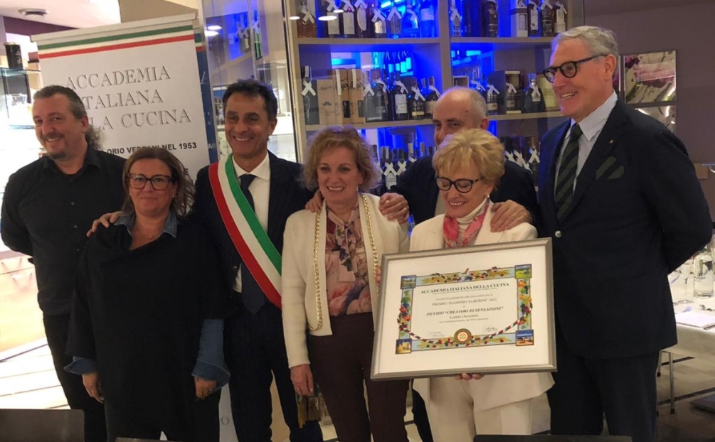 Si è svolta nella bellissima cornice della pasticceria Picchio di Loreto la consegna del Premio Massimo Alberini attribuito alla Pasticceria Picchio "creatori di sensazioni" che dal 1978 è un punto di riferimento per le dolci delizie di pasticceria, una eccellente pizza gourmet, oltre ad una gelateria e cioccolateria di assoluta eccellenza. Alla cerimonia di premiazione è intervenuto il sindaco di Loreto Moreno Pieroni che ha consegnato, assieme al Delegato di Ancona Sandro Marani, il premio Alberini alla titolare Elisabetta Marcozzi (foto 1) e alla famiglia Picchio (foto 2). Intervenuti anche la Presidente del Consiglio comunale Silvia Giampaoli e l'assessore al commercio Francesca Carli che si sono complimentate con i premiati per il riconoscimento ottenuto, orgoglio ed esempio per l'intero territorio, elogiando un'altra eccellenza del comune di Loreto, il dott. Carlo Garofoli, della cantina Garofoli (foto 3). La manifestazione si è conclusa con una magistrale e indimenticabile degustazione di pizze gourmet e della prelibatissima pasticceria. Tutta la produzione realizzata con grande passione e professionalità dell’instancabile Elisabetta che con Angela, Claudio e i figli Francesca e Roberto, ogni giorno confermano la meritata assegnazione del Premio.