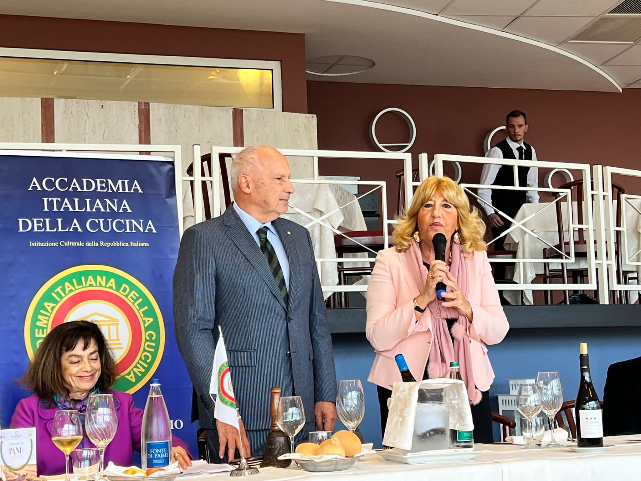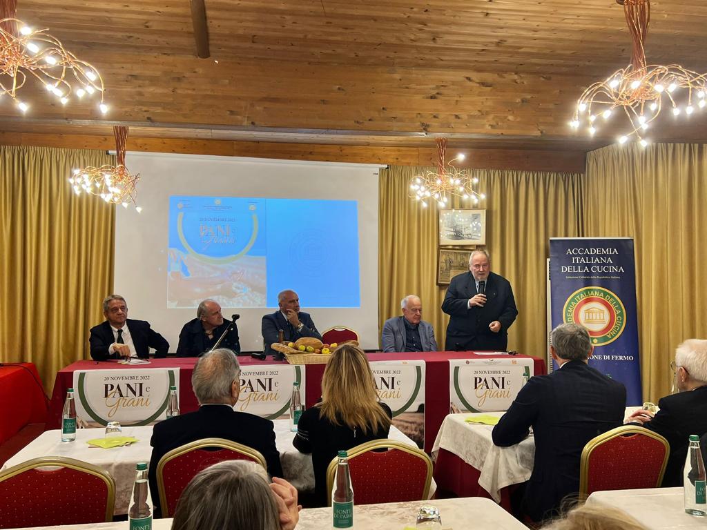 Si è svolto a Porto San Giorgio l'evento intitolato “Grani e Pani” organizzato dalla Delegazione di Fermo con il patrocinio del Comune di Porto San Giorgio, presente con il Sindaco Valerio Vesprini e l'assessore Giampiero Marcattili e dell’APA, Associazione Panificatori Artigiani delle Provincie di Fermo e Ascoli Piceno rappresentata dal Presidente Settimio Tassotti. Ospite di riguardo Vincenza Filippi già Prefetto di Fermo (foto 1 con Delegato Torresi). Simposiarca per l’occasione è stata Clarissa Marzialetti che magistralmente e con puntigliosa dedizione ha curato la complessa organizzazione. La prima parte dell’evento, dopo l'accoglienza del Delegato e i saluti di Sindaco, Assessore e Presidente APA, ha visto la partecipazione del dott. Roberto Ferretti, Premio Nuvoletti 2022, del dott. Lando Siliquini, Presidente del Laboratorio Piceno per la Dieta Mediterranea e del membro del Centro Studi F. Marenghi Leonardo Seghetti (foto 2), cui sono seguite brevi conclusioni da parte del CT Sandro Marani. Si è passati poi alla celebrazione del 160° anno di attività del Panificio Petrelli di Porto San Giorgio con la consegna di riconoscimenti da parte delle autorità (foto 3). Il prosieguo della giornata è stato riservato al momento conviviale per Accademici e amici sul tema dell’evento legato alla cucina marinara sangiorgese (foto 4). Dopo i ringraziamenti al cuoco Fabio Vengo, il Delegato Torresi ha aperto un partecipato dibattito sulle pietanze servite che si è per lo più incentrato sul tema del brodetto.