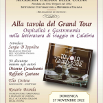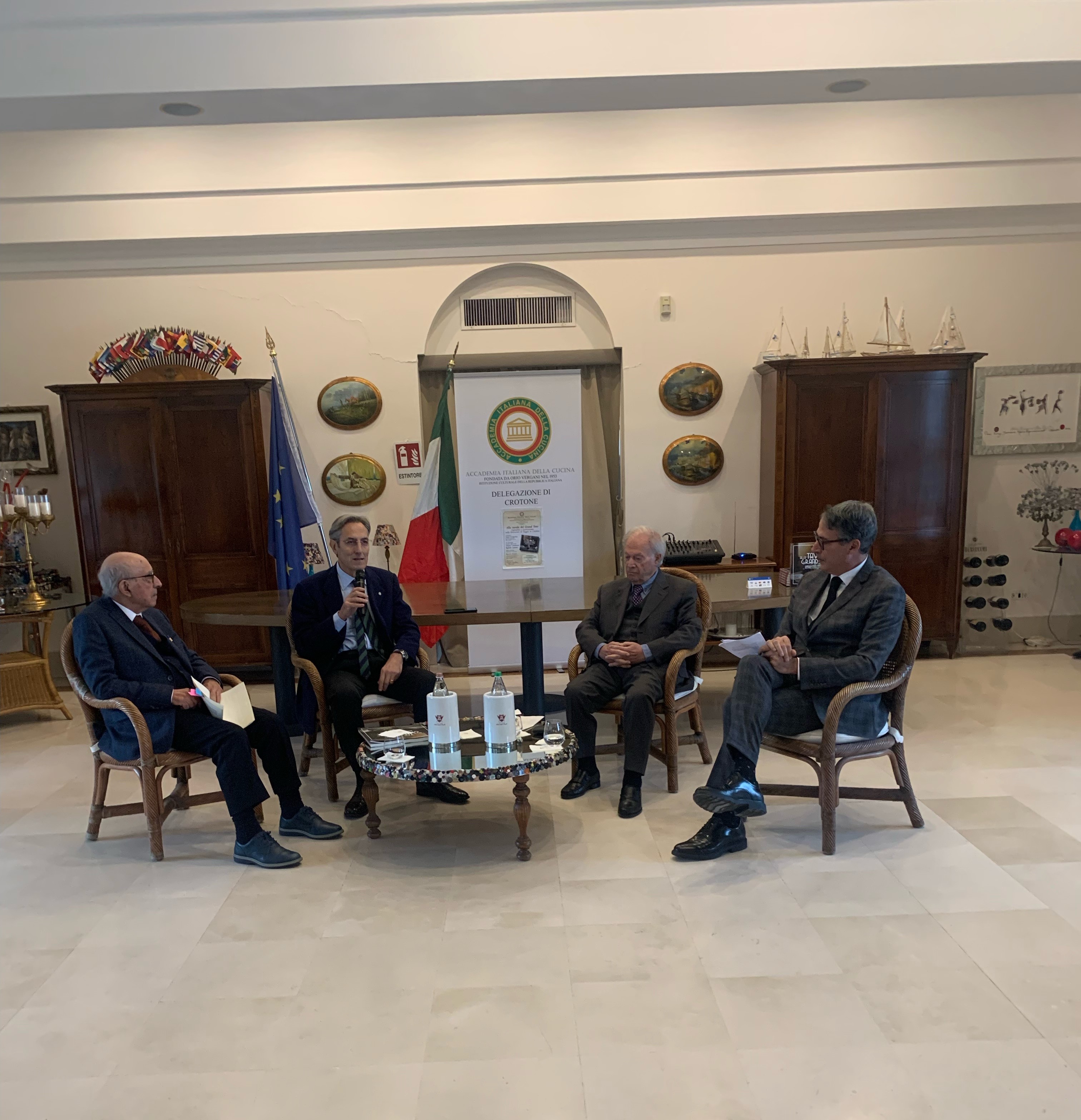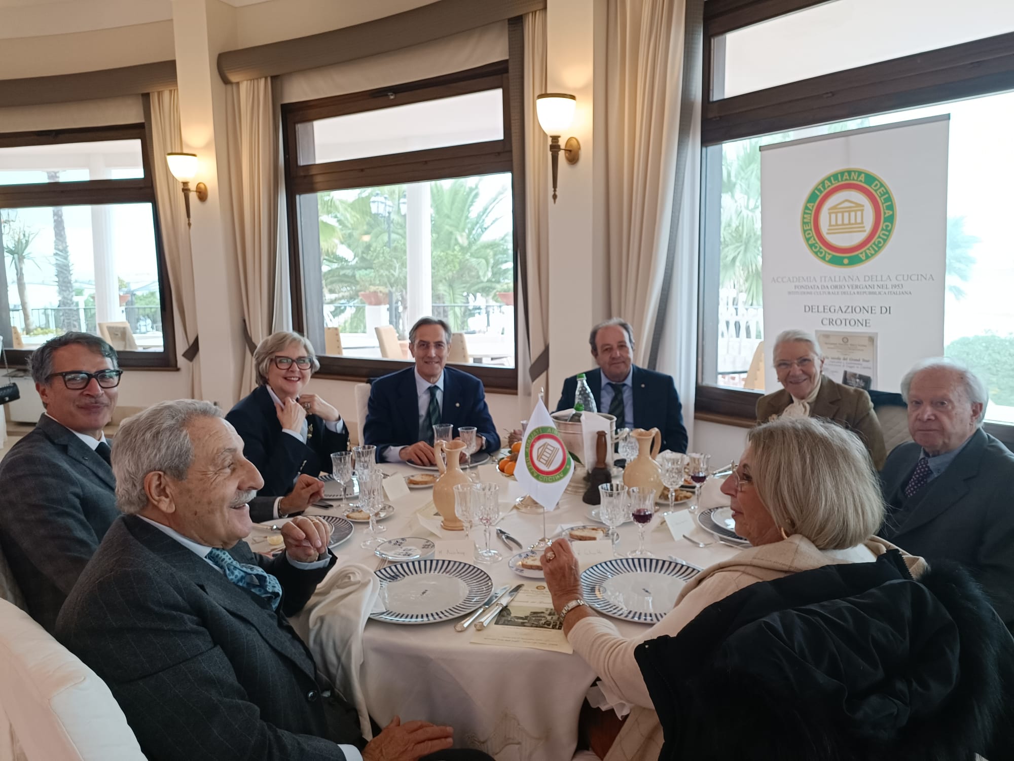 Il 27 novembre nella sala dei convegni del Lido Degli Scogli a Crotone si è svolta una interessante discussione sull’ultimo lavoro di Ottavio Cavalcanti, Accademico onorario della Delegazione di Cosenza e Direttore Centro Studi Calabria. Presenti all’incontro il Coordinatore Territoriale e Delegato di Cosenza Rosario Branda, la Delegata di Catanzaro Rosanna Muscolo Nicotera e tantissimi altri illustri ospiti. Ricercato, per l’occasione, il menu che ha voluto ricalcare i cibi del periodo del Grand Tour menzionati nel libro.