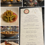 Dopo avere spaziato in questo 2022 tra lago e montagna, la Delegazione Val d’Ossola ha reso omaggio alla città di Domodossola recandosi presso il ristorante l’Atelier dello chef Giorgio Bertolucci per la cena degli auguri di Natale. Alla magia creata dalle raffinate decorazioni natalizie si è unito il mistero del menu, svelato solamente all’arrivo nella sala messa a completa disposizione degli Accademici. Dopo le classiche bollicine di Trento doc con assaggio di cinque diverse portate e l’antipasto di pesci d’acqua dolce, è stato servito il piatto forte, il tortello di fassona alla Wellington esaltato da un leggero brodo di prosciutto affumicato vigezzino e accompagnato da un ottimo Pinot nero del nord-est. A seguire, stracotto di coda di manzo, melannurca, porto e patate, e girella di Bettelmatt degustata con un’ottima birra al miele. Dopo il pre dessert, ecco il foliage dei 100 anni, dolce decorato da castagne, funghi pioppini caramellati, liquirizia e cioccolato bianco, dedicato al treno che percorre la valle Vigezzo. A fine cena il giovane chef si è intrattenuto con gli Accademici e ha ricevuto dal Delegato Paolo Rossi il libro sul tema del 2022 e il guidoncino della Delegazione.