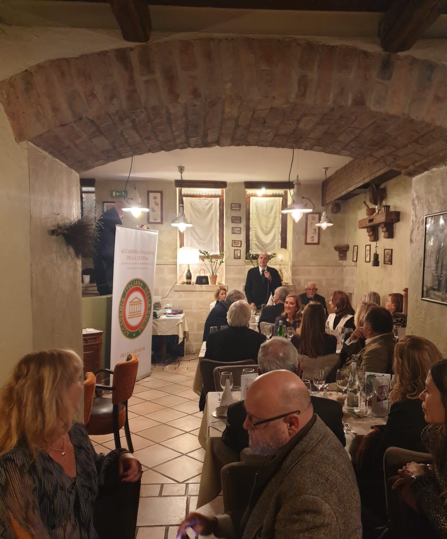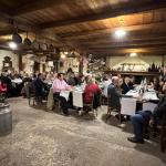 Cena ecumenica della Delegazione di Biella all’agriturismo “Ca’ d’Andrei” di Sagliano per l’attività di contadini e allevatori di bestiame, capre in particolare, della famiglia Finco. L’azienda è famosa nel biellese per la produzione di formaggi caprini a latte crudo anche se alleva altri animali come bovini e maiali per la produzione di salumi. Andrea e Monica hanno appositamente aperto la loro struttura per accogliere gli Accademici. Monica ha creato un menu seguendo il tema ed attingendo ai prodotti della loro azienda a conduzione familiare. È stata rispettata la stagionalità, la tradizione locale e la genuinità delle materie prime utilizzate. Grande apprezzamento per ogni singolo piatto, partendo dall’antipasto con salumi, formaggi accompagnati da una crespella di broccoli e noci e da uno sformato di verza e castagne. A seguire delle succulente tagliatelle condite con crema di zucca e pancetta croccante e per finire la capra stufata. Serata allietata da una brillante dissertazione sul tema della cena del membro del CST, Giorgio Lozia.
