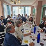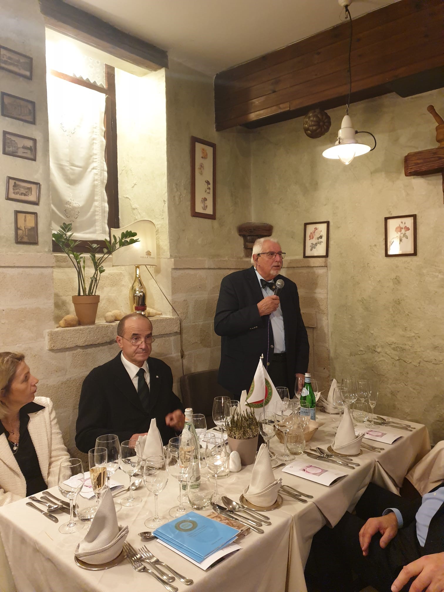 Celebrata al ristorante Krizia la Conviviale Ecumenica della Delegazione di Budapest. Il tema del convivio, vasto e complesso, "La tavola del contadino. Il campo, il cortile, la stalla nella cucina della tradizione regionale", non poteva non suscitare la curiosità e l’interesse degli Accademici, convenuti in numero significativo a questo importante evento (foto 1). Il menu, concordato con il Delegato Michele Fasciano in qualità di Simposiarca, ha espresso appieno le riconosciute capacità dello chef Graziano Cattaneo che per l’occasione ha utilizzato alcuni prodotti coltivati ed allevati nella sua casa di campagna (foto 2 Delegato consegna pubblicazioni e piatto dell'anno allo chef Cattaneo). La combinazione di gusti e sapori è stata veramente intrigante suscitando l’unanime giudizio di apprezzamento. Il Delegato onorario Alberto Tibaldi (foto 3) ha tenuto una interessante relazione sul significato del tema scelto per la Ecumenica.