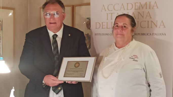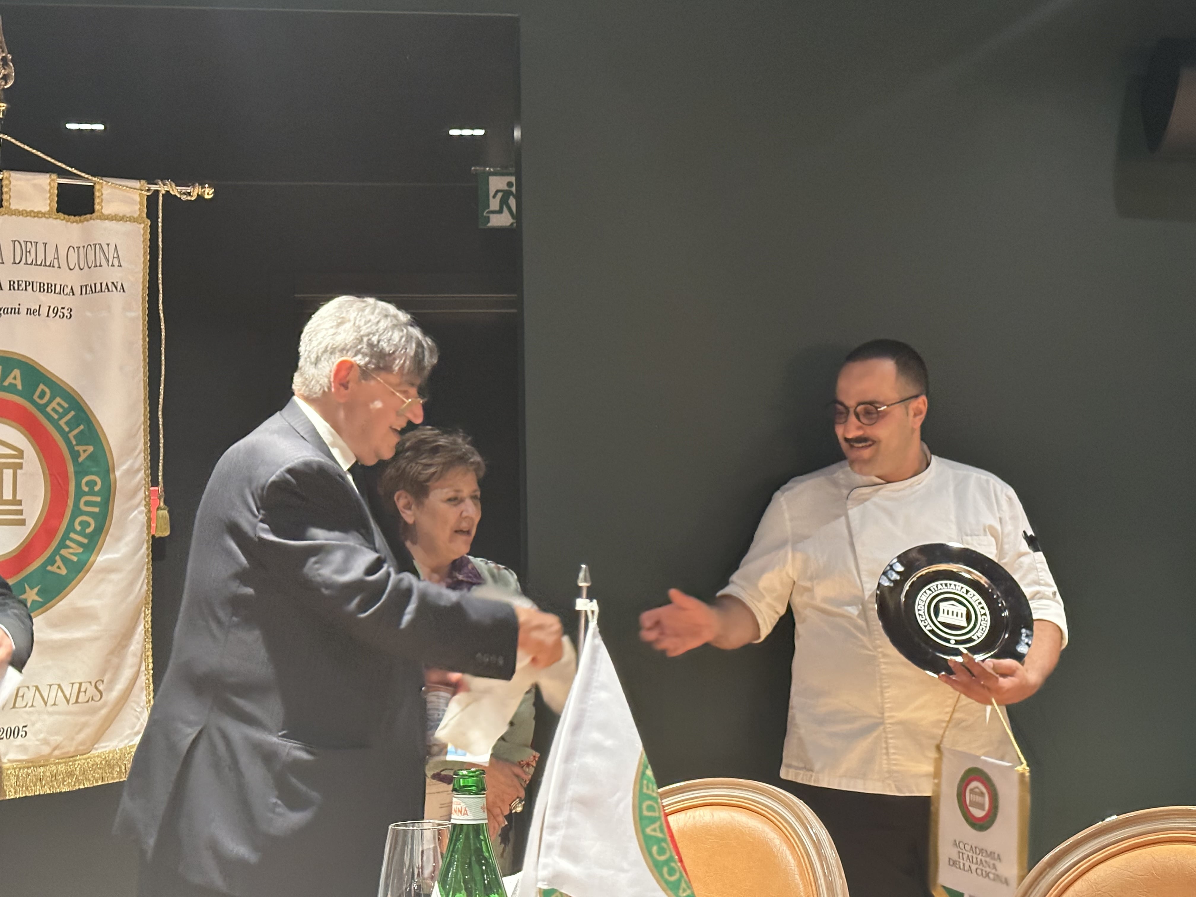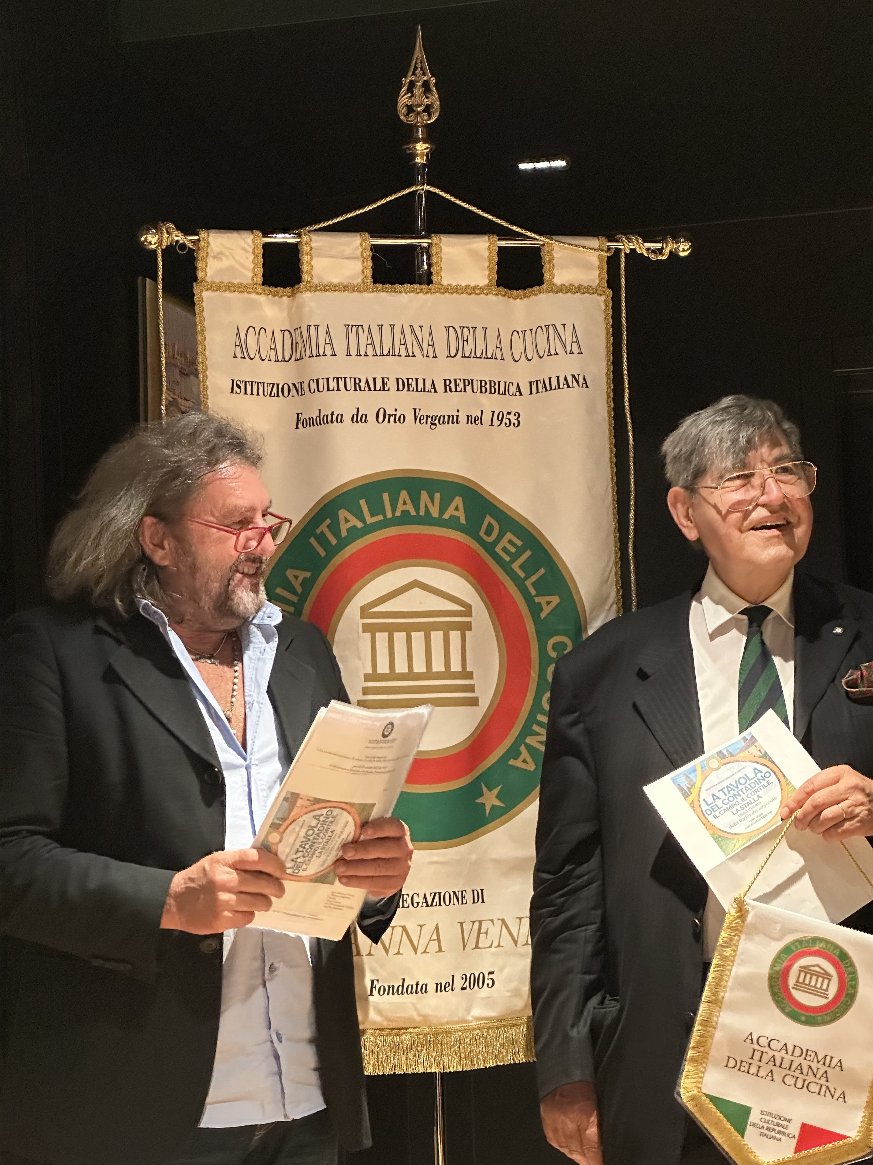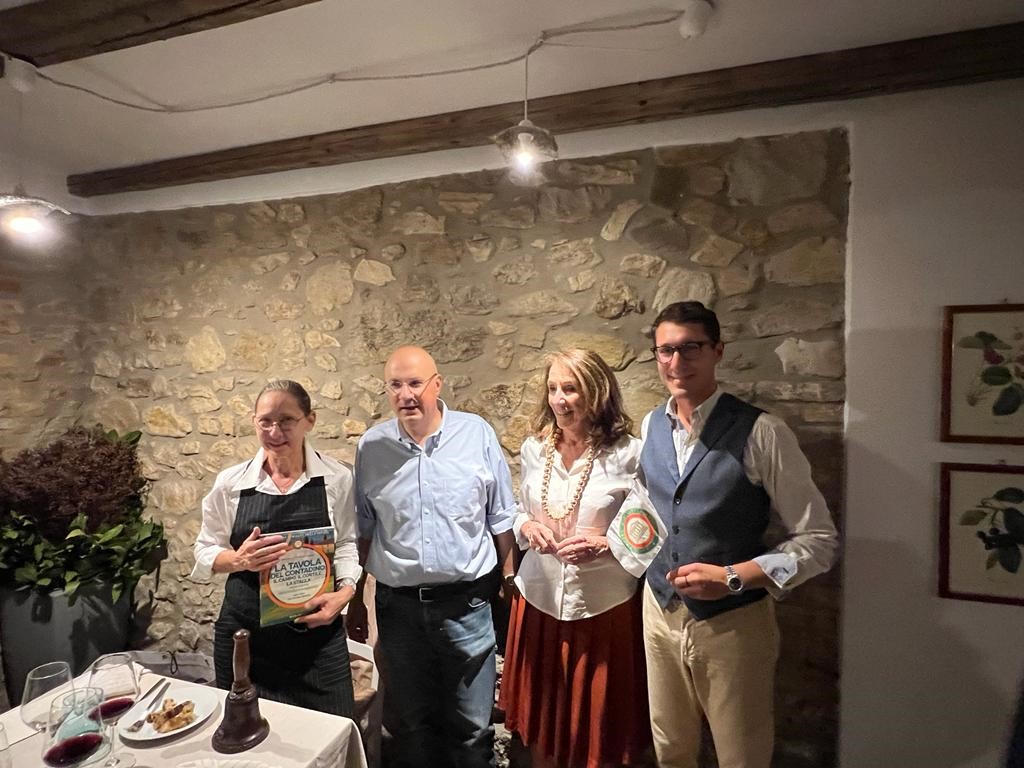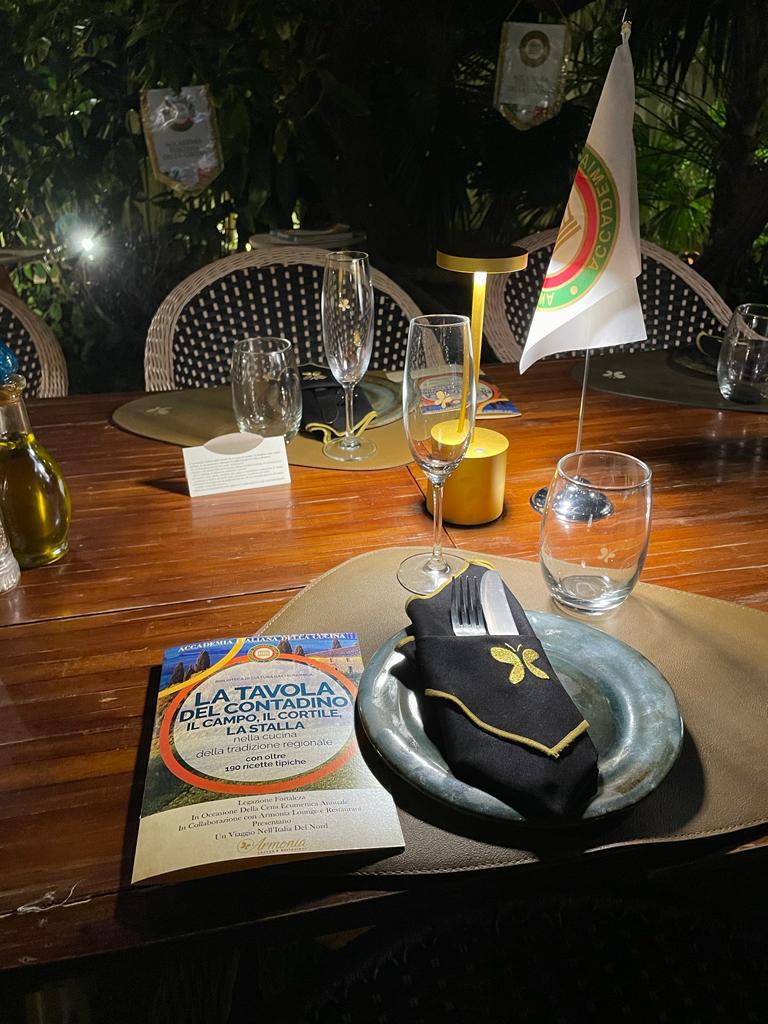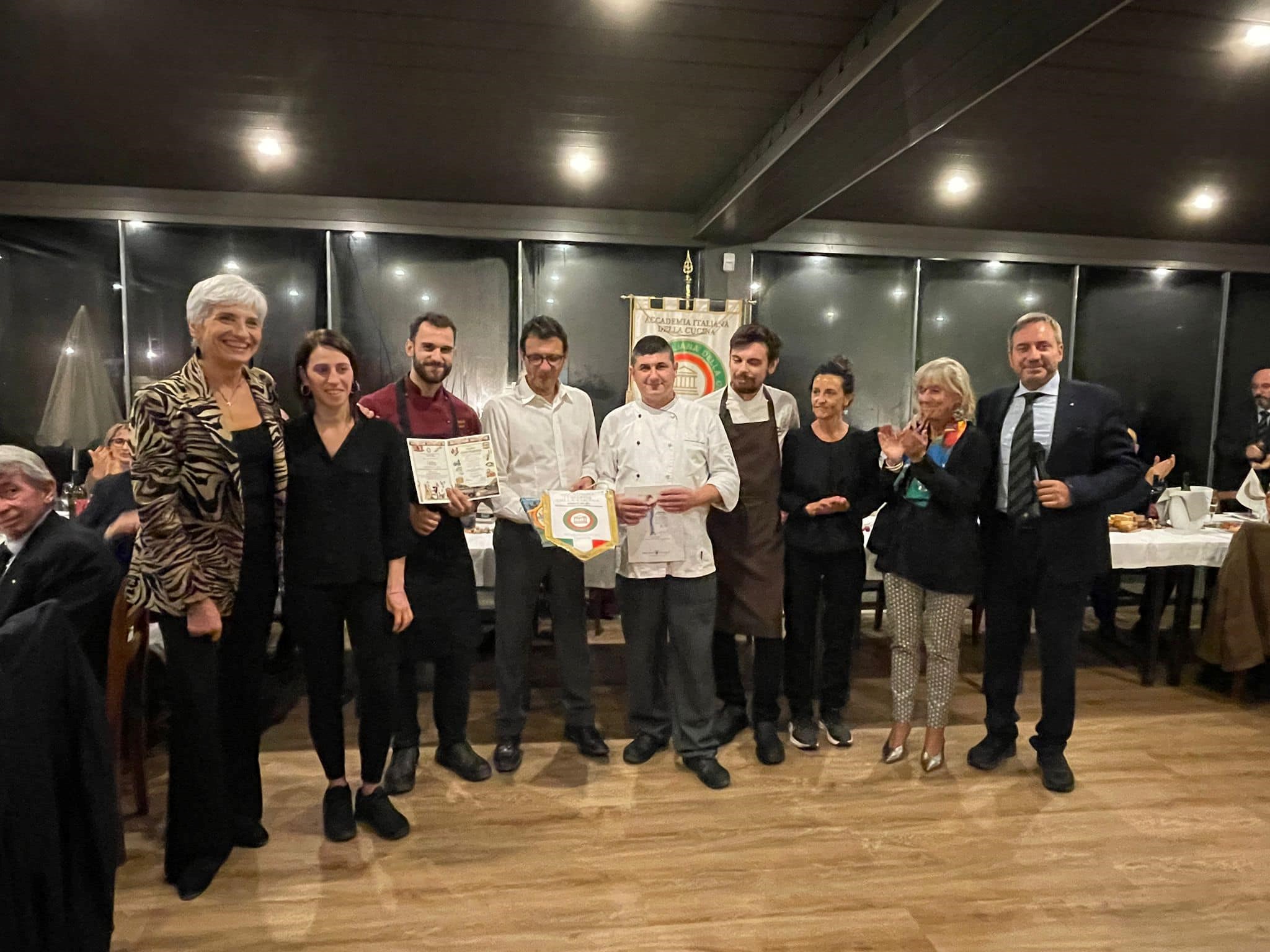 Provare a restituire il giusto rilievo ad una cucina nata povera per necessità e disponibilità, ma straordinariamente ricca di inventiva e sapiente manualità, ha costituito la traccia lungo quale è stata sviluppata l’organizzazione della Conviviale Ecumenica. Presentazione a due voci da parte del DCST Ottavio Cavalcanti e del Delegato Rosario Branda che hanno avuto modo di evidenziare come, in un tempo in un tempo frastornato da una letteratura invasiva, contraddittoria e spesso poco affidabile, sorpreso da repentini cambiamenti ambientali e climatici, siano tornati di grande attualità concetti quali genuinità, salubrità, sostenibilità ed equilibrio nutrizionale che sono da sempre i tratti distintivi del tema dell’anno. La località amena del Resort Borgo Rosso di Sera, immerso nel verde e sospeso tra mare e collina, ha fatto da cornice al partecipato momento conviviale (foto 1), allietato in maniera sapiente dalla cucina (foto 2) fino alla presentazione dei dolci (foto 3). Con applausi la consegna del guidoncino dell’Accademia al titolare Cosimo De Tommaso (foto 4).