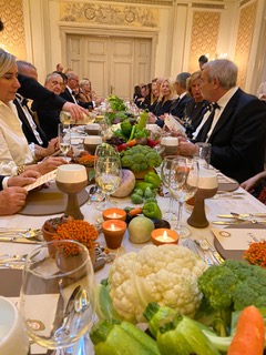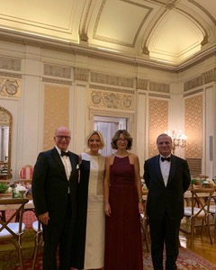 La cena ecumenica della Delegazione di Istanbul si è svolta nell'elegante e raffinata cornice di Palazzo Venezia, residenza dell'Ambasciatore d'Italia in Turchia. L'Ambasciatore S.E. Giorgio Marrapodi e la Sig.ra Loriana Marrapodi hanno accolto gli Accademici onorandoli della loro presenza. Tra le autorità, presente anche la Console degli Stati Uniti, Fleur Cowan, appassionata di cucina e cultura italiana. Il menu è stato concordato dalla Delegata Dilek Bil con lo chef Carlo Bernardini per creare un piacevole contrasto armonico tra l'eleganza del locale e degli ospiti, la tavola rustica ma raffinata e la decorazione a base di verdure di stagione. Il menu è stato studiato con meticolosa cura per aderire al tema proposto dall'Accademia, ma anche con lo spirito di evitare sprechi e ridurre l'impatto ambientale. La scelta è stata coraggiosa, proponendo piatti che si discostano decisamente dalla tradizione culinaria del Paese ospitante: quaglie arrosto su insalata tiepida di fave con funghi porcini e pancetta; gnocchi di zucca croccanti con animelle di vitello, foglie di bietola e fonduta di gorgonzola; involtino di coniglio selvatico con pecorino stagionato, cavolo nero, spugnole e salsa di prugne. Per finire, una deliziosa torta rustica di pere e castagne con gelato alle mandorle. Gli Accademici e i loro ospiti sono rimasti molto soddisfatti del menu proposto e dei vini in abbinamento. Durante la serata la Delegata Dilek Bil ha consegnato allo chef Carlo Bernardini il premio Giovanni Nuvoletti (2020) in riconoscimento della sua professionalità e del suo impegno nel far conoscere la cucina italiana di alto livello in Turchia.