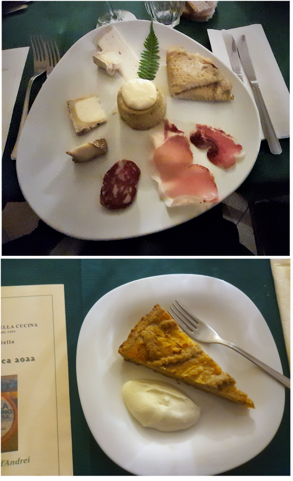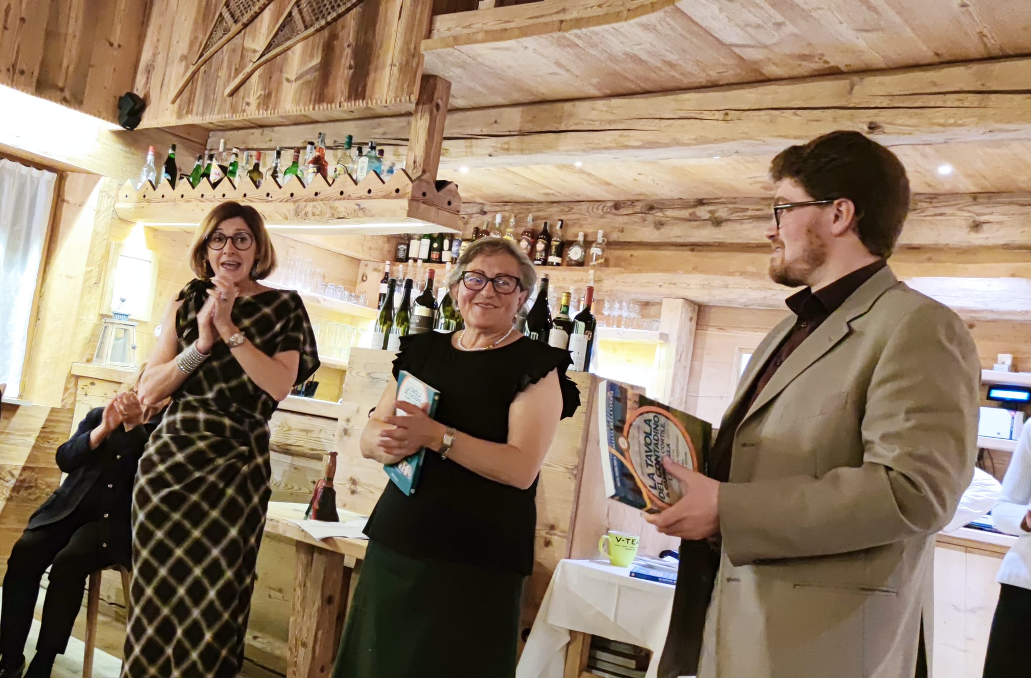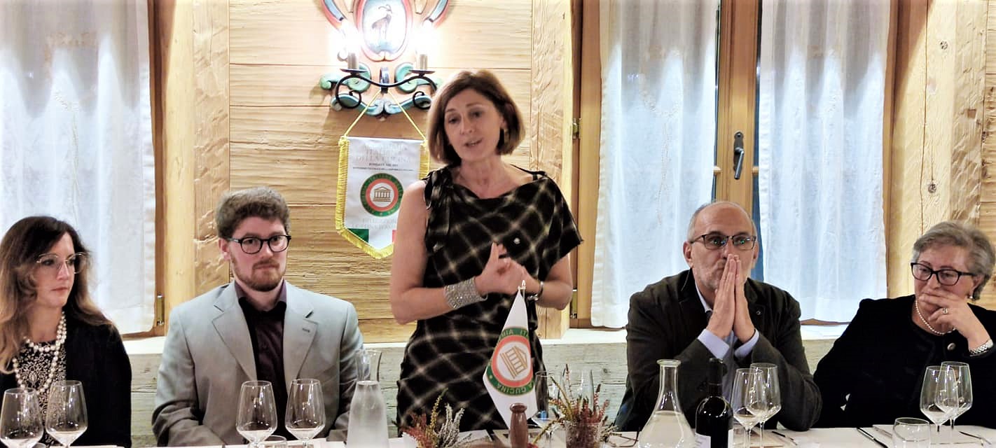 Il convivio ecumenico del 2022 della Delegazione di Cortina d’Ampezzo si è tenuto presso l’agriturismo Jagerhaus a Cadin di Cortina. La struttura, a conduzione famigliare, si adatta particolarmente al tema di quest’anno, in quanto dotata di bio fattoria con stalla e orto. Alla produzione dell’agriturismo si è affiancata sulle tavole anche quella dell’azienda agricola biologica Sanwido di San Vito di Cadore, anche questa a gestione famigliare, con allevamento di capre da latte, produzione di formaggi e gelati, di ortaggi estivi ed autunnali. Le Simposiarche Marzia Del Favero e Monica Sardonini Hirschstein hanno voluto valorizzare la produzione locale, portando in tavola i piatti della stretta tradizione ampezzana. Ha concluso la serata il dolce tipico delle feste, il brazorà con i carafoi al centro, accompagnato dalla tipica grappa al ciariè, o seme di cumino. I relatori presenti, Elsa Zardini presidente dell’Union de i Ladìs de Anpezo, ed Enrico Pordon, titolare dell’azienda agricola Sanwido, hanno parlato rispettivamente delle abitudini delle cucine e dei campi di un tempo, e di cosa voglia dire essere contadino ai nostri giorni, coniugando tradizione ed innovazione a tutela di un pubblico nostalgico ma esigente.