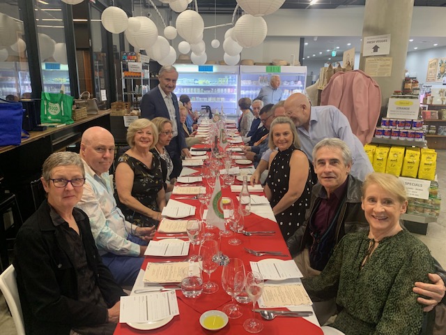 Cena ecumenica della Delegazione di Canberra al ristorante “The Italian Place” che ha riservato una sala esclusivamente per Accademici e loro ospiti. È stato seguito e rispettato il tema dell’anno “La tavola del contadino” utilizzando tutti i prodotti locali, rintracciati dai campi e cortili dei contadini, per la preparazione dei gustosi piatti come fiori di zucchine con ricotta e acciughe, parmigiana di melanzane, gnocchi, pollo alla cacciatora e costolette di agnello in crosta con erbe servite con purè di zucca e marmellata di cipolle. Durante la serata il Delegato Luciano Lombardo ha relazionato sul Tema e presentato il libro al proprietario del locale sig. Lo Terzo con cui si è congratulato per l’organizzazione dell’evento accademico.