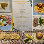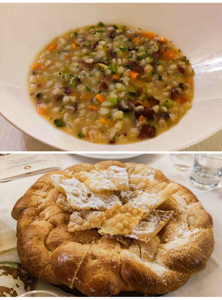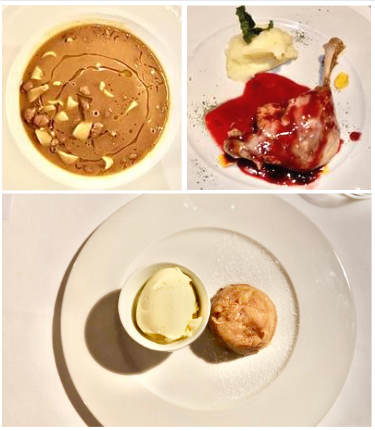 Cena Ecumenica presso l’osteria “La Fefa” di Finale Emilia con consegna del Diploma di Buona Cucina alla titolare e chef Giovanna Guidetti che ha interpretato in maniera straordinaria il tema della serata dedicato al tavola del contadino. La Simposiarca della serata, DCST Emilia Elisabetta Barbolini, ha introdotto l’ultimo volume pubblicato dall’Accademia con particolare approfondimento sul maiale e sul ruolo centrale che assume nella vita della famiglia contadina. In questa speciale occasione è anche avvenuta la consegna delle insegne al neo Accademico Ugo Bonavolta. Foto 1. Il Delegato Pier Paolo Veroni introduce il convivio. Foto 2. La consegna del Diploma di Buona Cucina. Foto 3. Da sinistra. Il Delegato, Accademico Bonavolta, DCST Barbolini. Foto 4. Maltagliati in brodo di fagioli borlotti con cotiche di maiale; coscia di anatra in dolce e agro con salsa di lambrusco e uva e purè di patate; tortino di mele al profumo di cannella e gelato alla vaniglia.