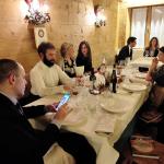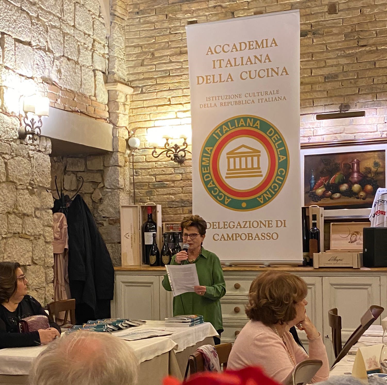 La cena ecumenica di Campobasso si è tenuta all'Osteria28, un ristorante del centro cittadino visitato per la prima volta dalla Delegazione. Un locale accogliente, dalle pareti in pietra, le alte volte a botte e le luci diffuse, guidato da Mariano Di Tota, un ristoratore giovane e molto esperto il quale ha collaborato con generosità ed entusiasmo alla preparazione della sala e del menu. Dopo una relazione brillante sul tema dell'anno, tenuta dal Segretario Gabriella Iacobucci, Simposiarca per l’occasione, il Delegato Ernesto Di Pietro ha suonato la campana e dato il via alla cena. La serata si è svolta in un’atmosfera allegra e distesa, e la cena semplice e raffinata, con le sue note autunnali di castagne, zucca e noci, ha incontrato il gusto di tutti. Lo si è inteso subito dai commenti dei commensali omogenei e lusinghieri. Anche i vini, due Tintilie molisane, sono piaciuti. Il caffè, gli amari della casa, e le foto di rito sullo sfondo dello stendardo dell’Accademia hanno concluso la riuscitissima cena.